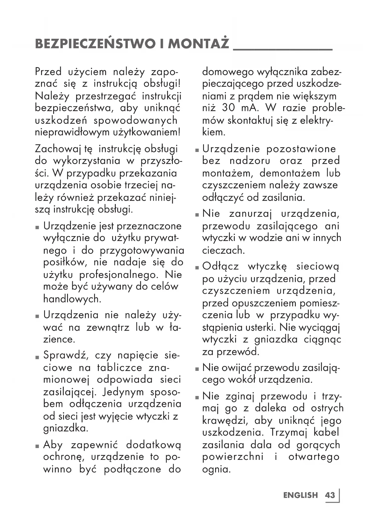 BEZPIECZEŃSTWO I MONTAŻ ______________