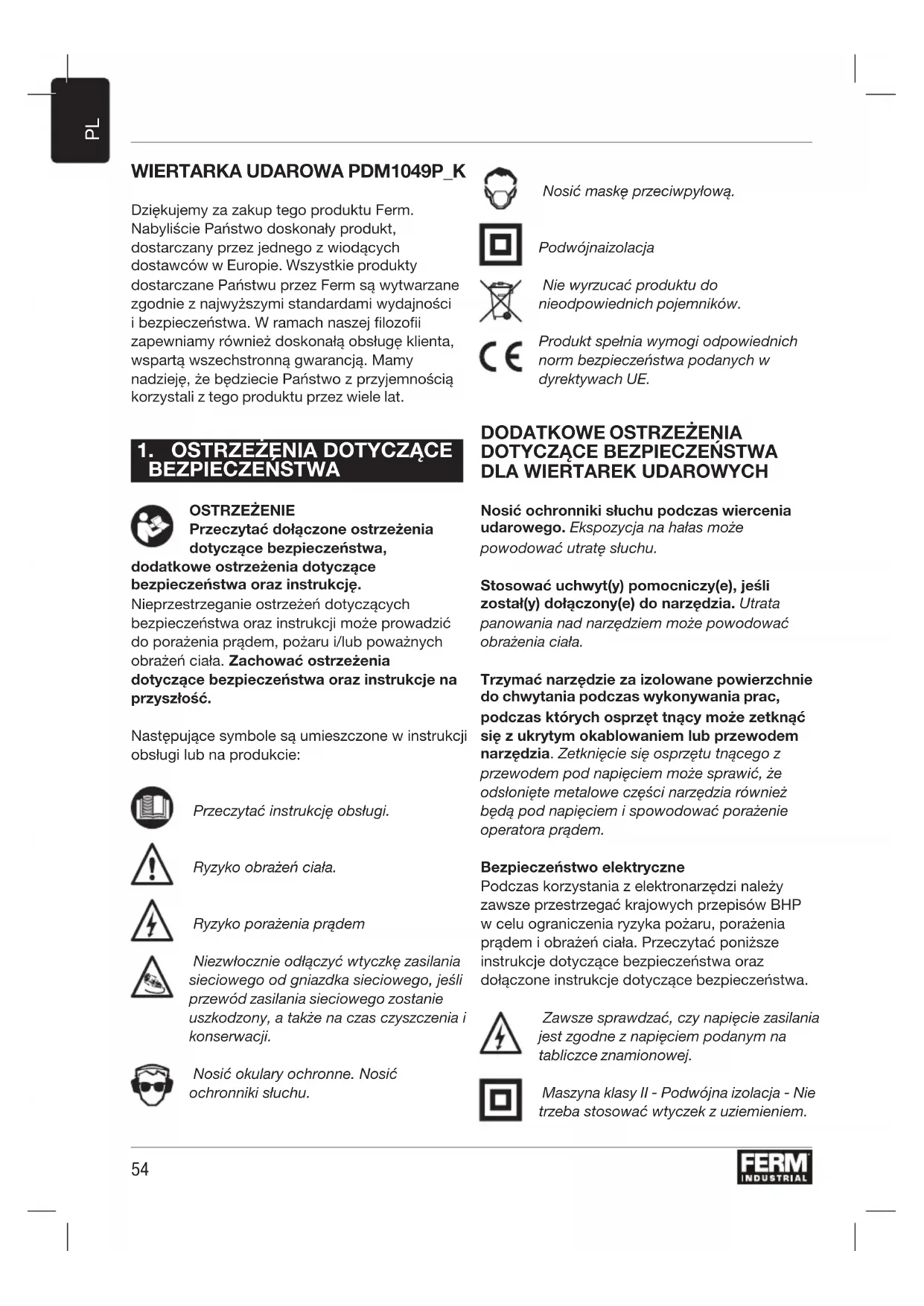 INSTRUKCJA OBSŁUGI PDM1049P_K Ferm