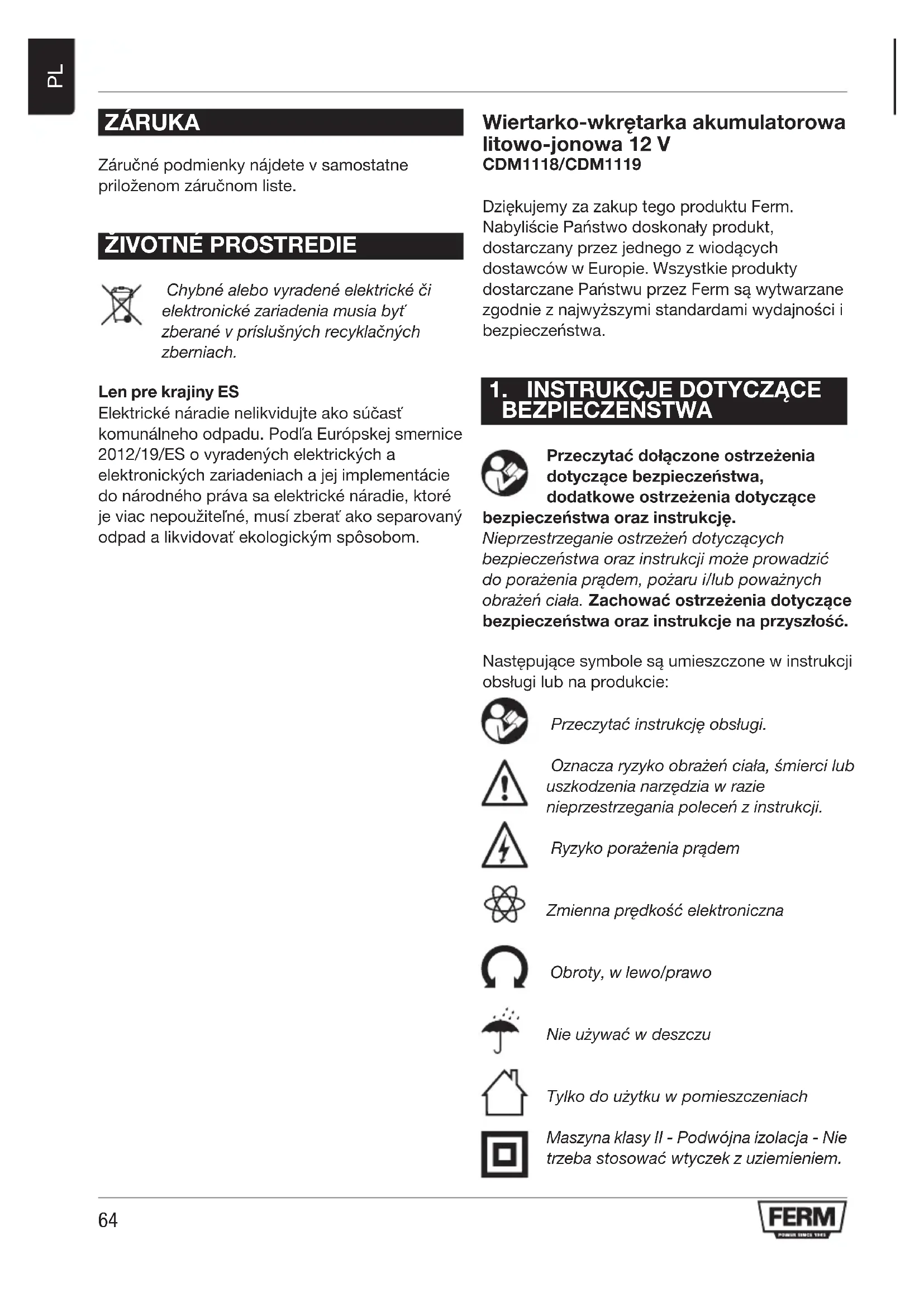 INSTRUKCJA OBSŁUGI CDM1118 Ferm