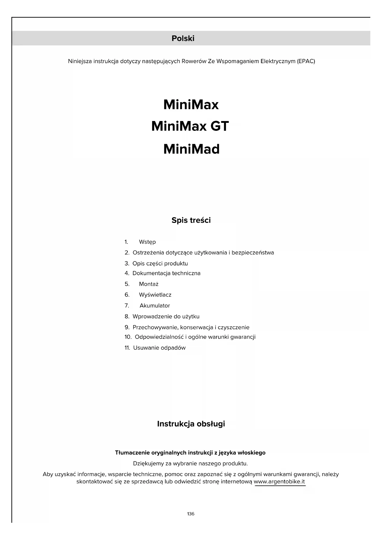 Mini Max - Rower elektryczny Argento - Bezpłatna instrukcja obsługi