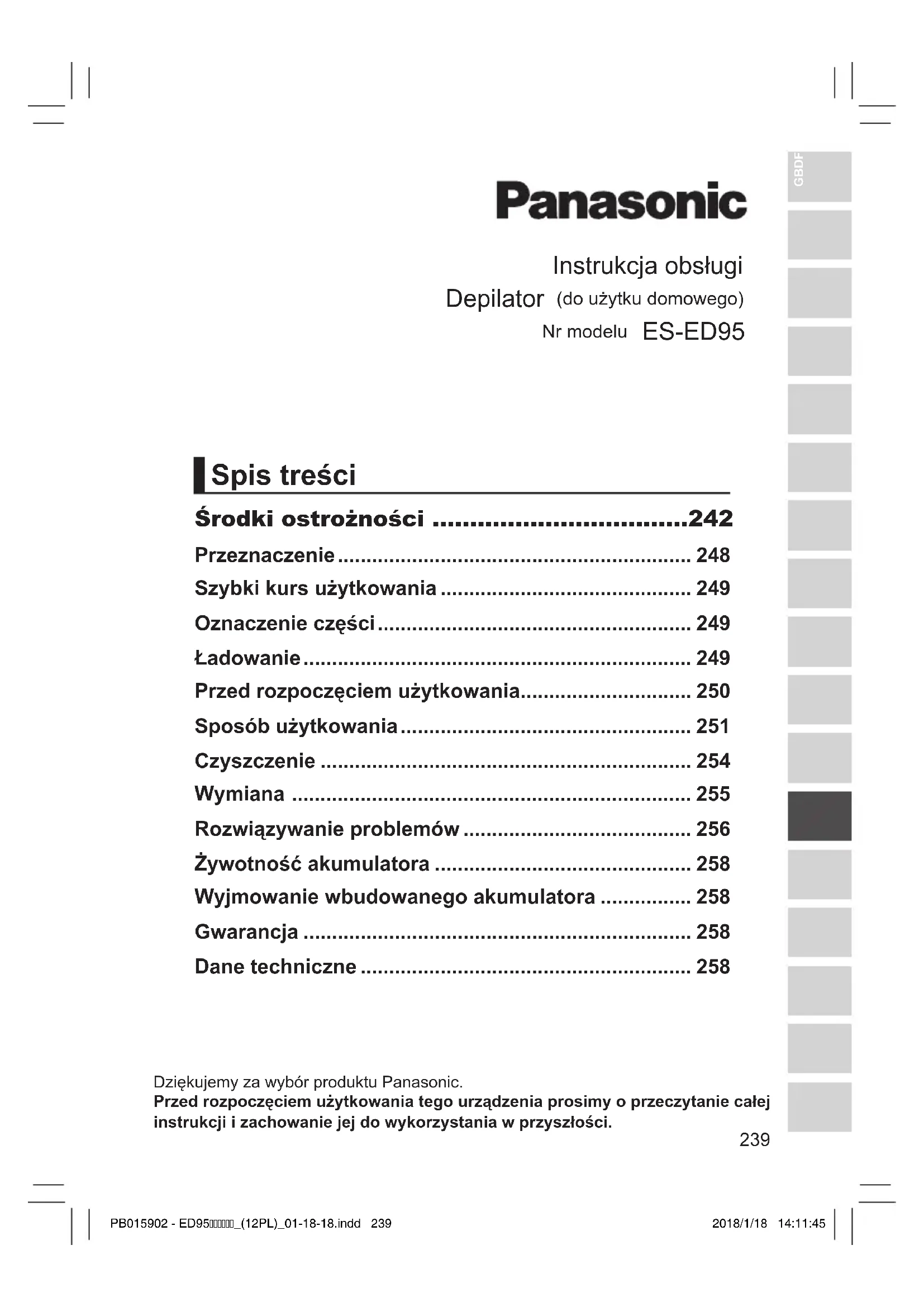 Znajdź bezpłatnie instrukcję urządzenia ESED95 PANASONIC w formacie PDF.