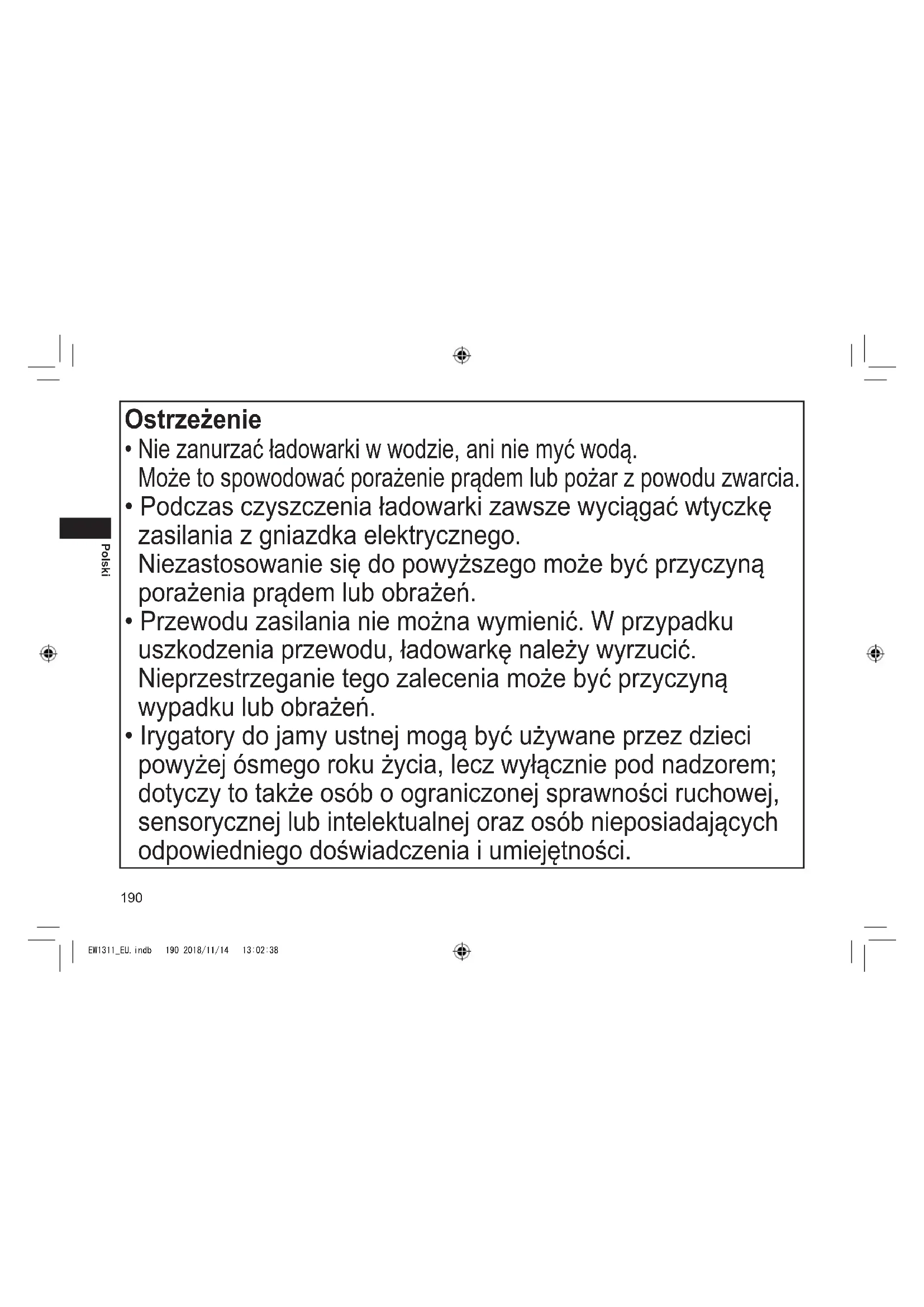 6SLVWUHĞFL EW1311_EU.indb 189 2018/11/14 13:02:38190 Polski Ostrzeżenie
