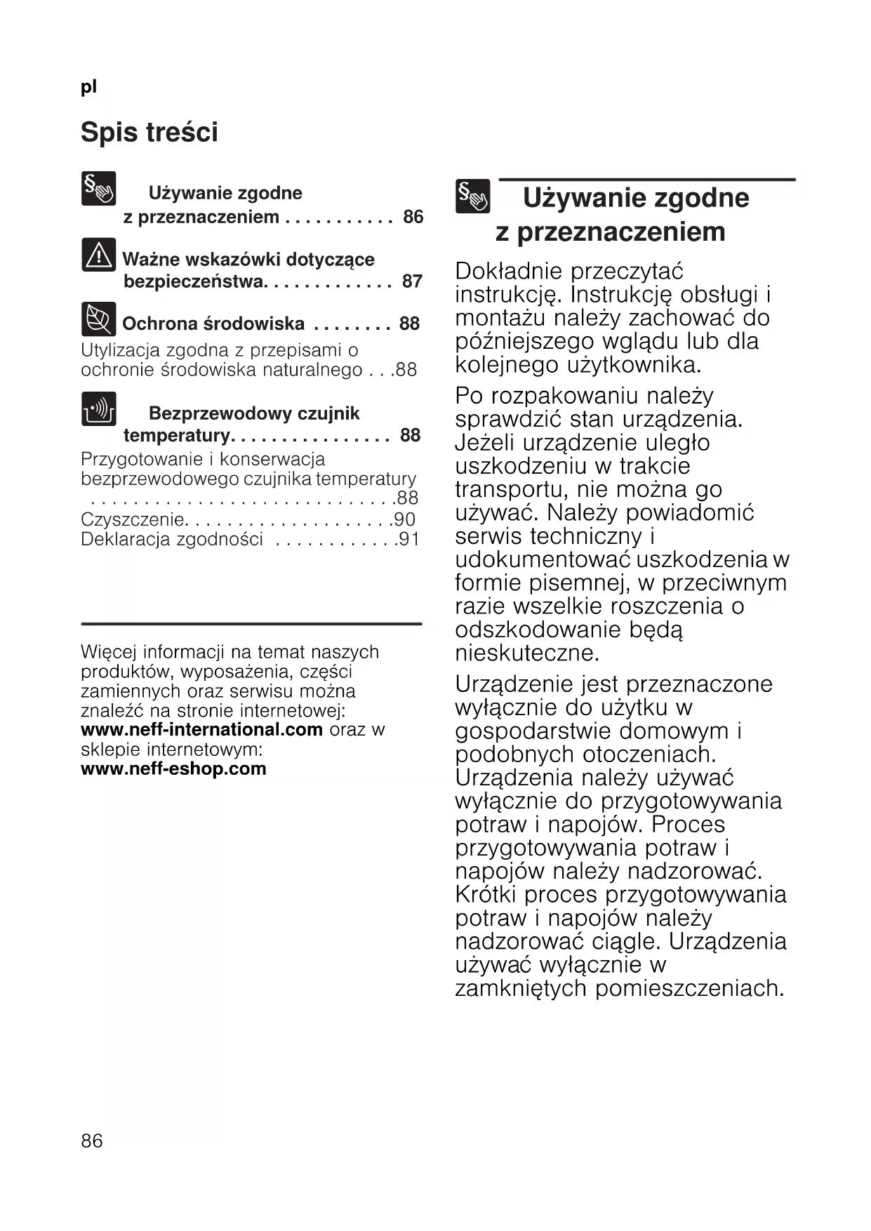 - Spis treści plInstrukcja obsługi 8 Używanie zgodne z przeznaczeniem p. 86