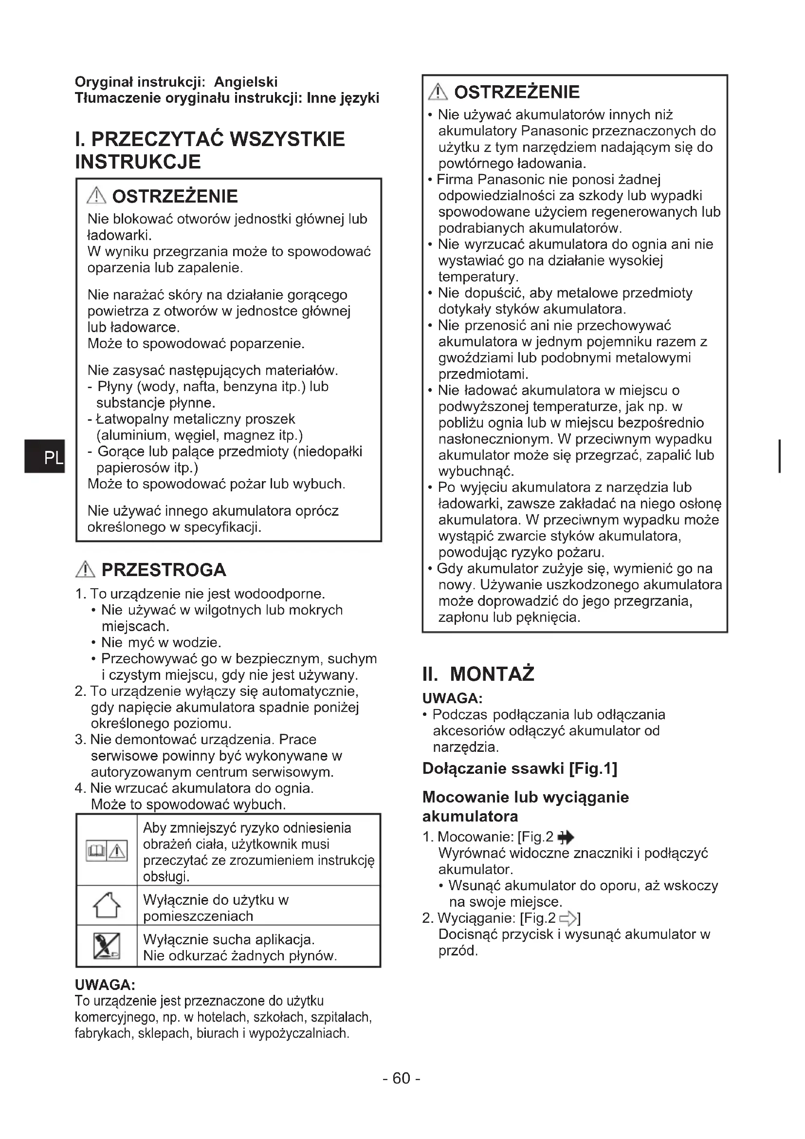 I. PRZECZYTAĆ WSZYSTKIE INSTRUKCJE