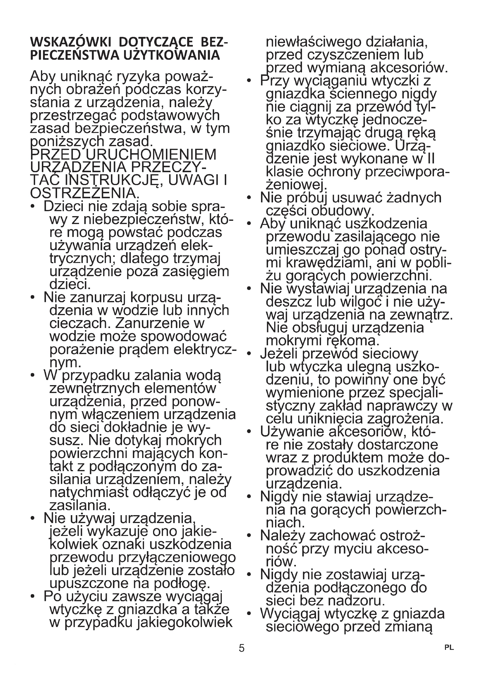 - Nigdy nie wiktadc palcow ani zadnych przydmiotow do dzbanka pod-czas pracy urzadzenia.