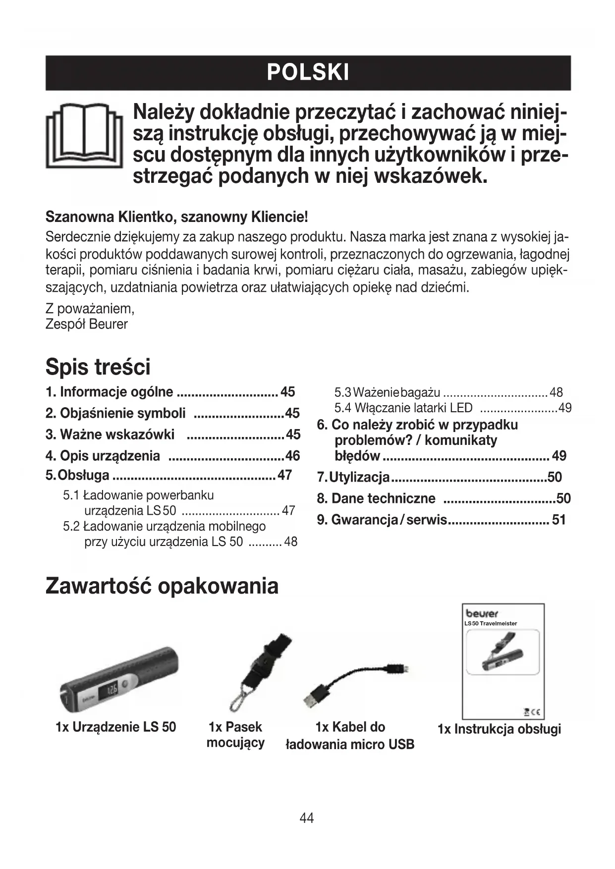 INSTRUKCJA OBSŁUGI LS 50 BEURER