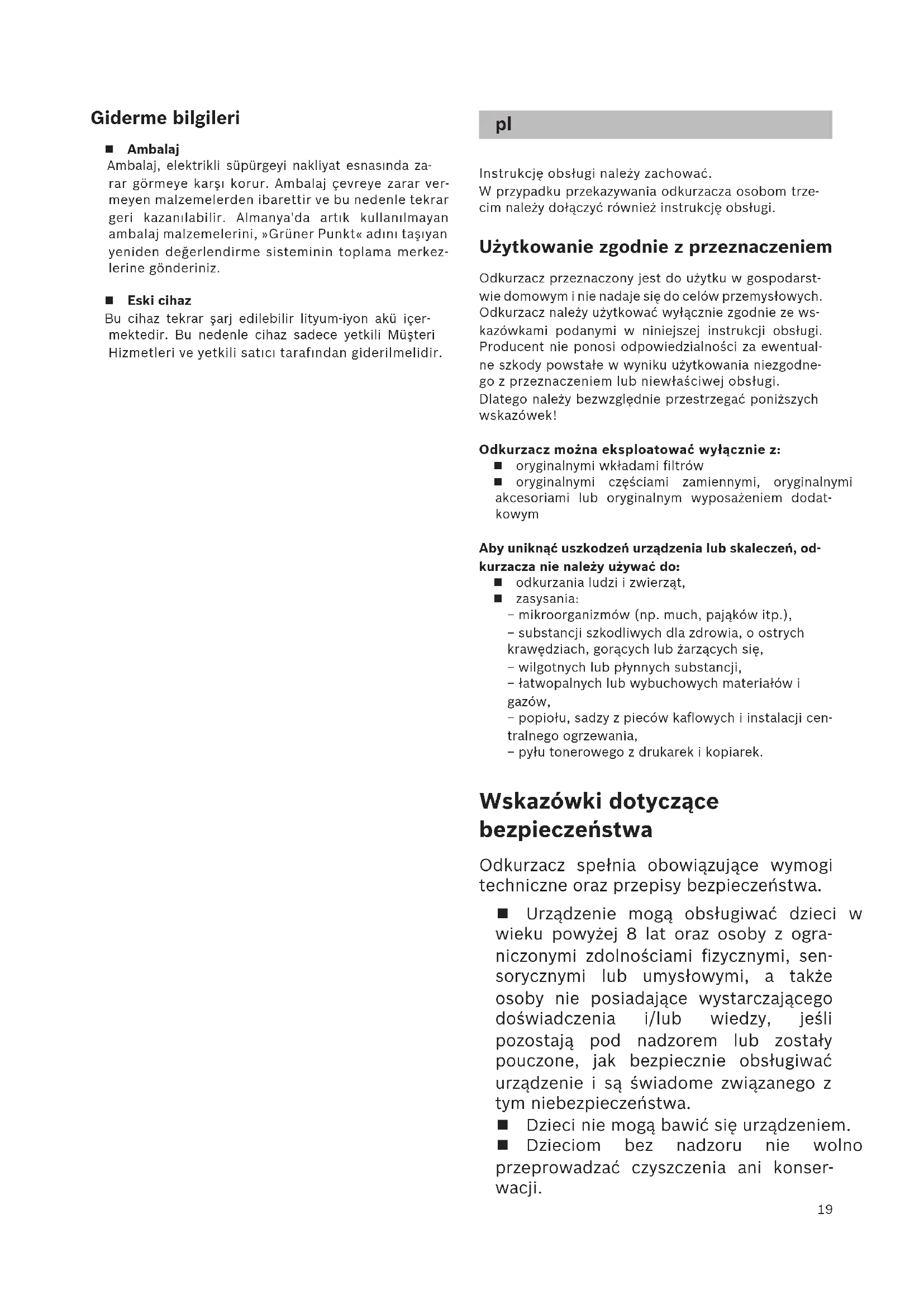 Odkurzacz przyznaczenia jest do uzytku w gospodarstwie domowym iNie nadaje są do celów przemysłowych. Odkurzacz naleź uzytkowej wyłacznie zgodnia ze wskazówki podanymi w niniejszej instrukcji obśugi. Producent nie ponosi odpowiedzialnosci za ewentualne szkody powstate wDyniku uzytkOWania niedgodego z przyznaczeniem lub niewlasciwej obśugi.