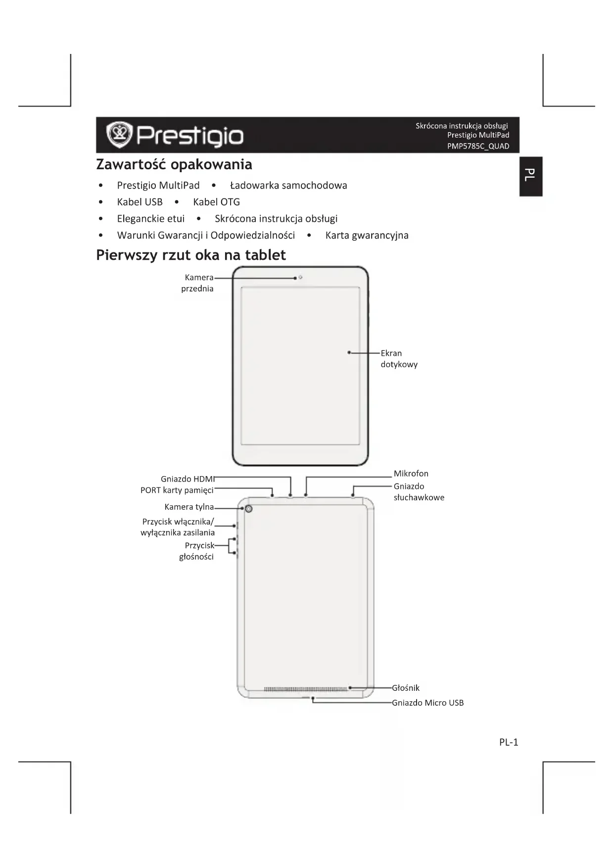 Skrócona instrukcja obsługi Prestigio MultiPad