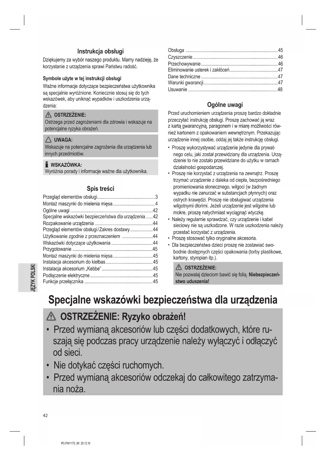 PCFW 1173 - Maszynka do mięsa PROFICOOK - Bezpłatna instrukcja obsługi
