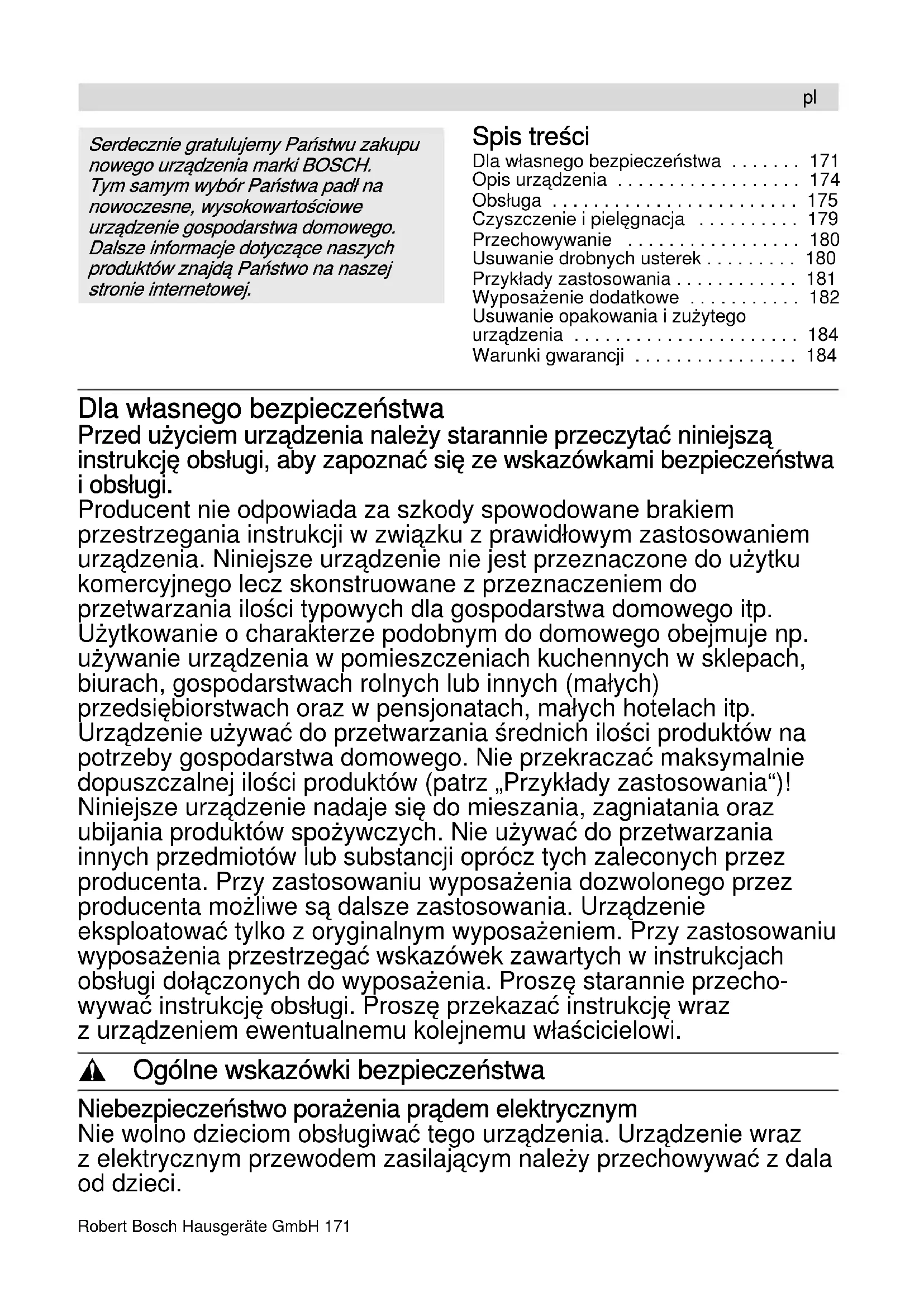 - Değişiklikler olabilir.Robert Bosch Hausgeräte GmbH 171 Spis treści Dla własnego bezpieczeństwa p. 171