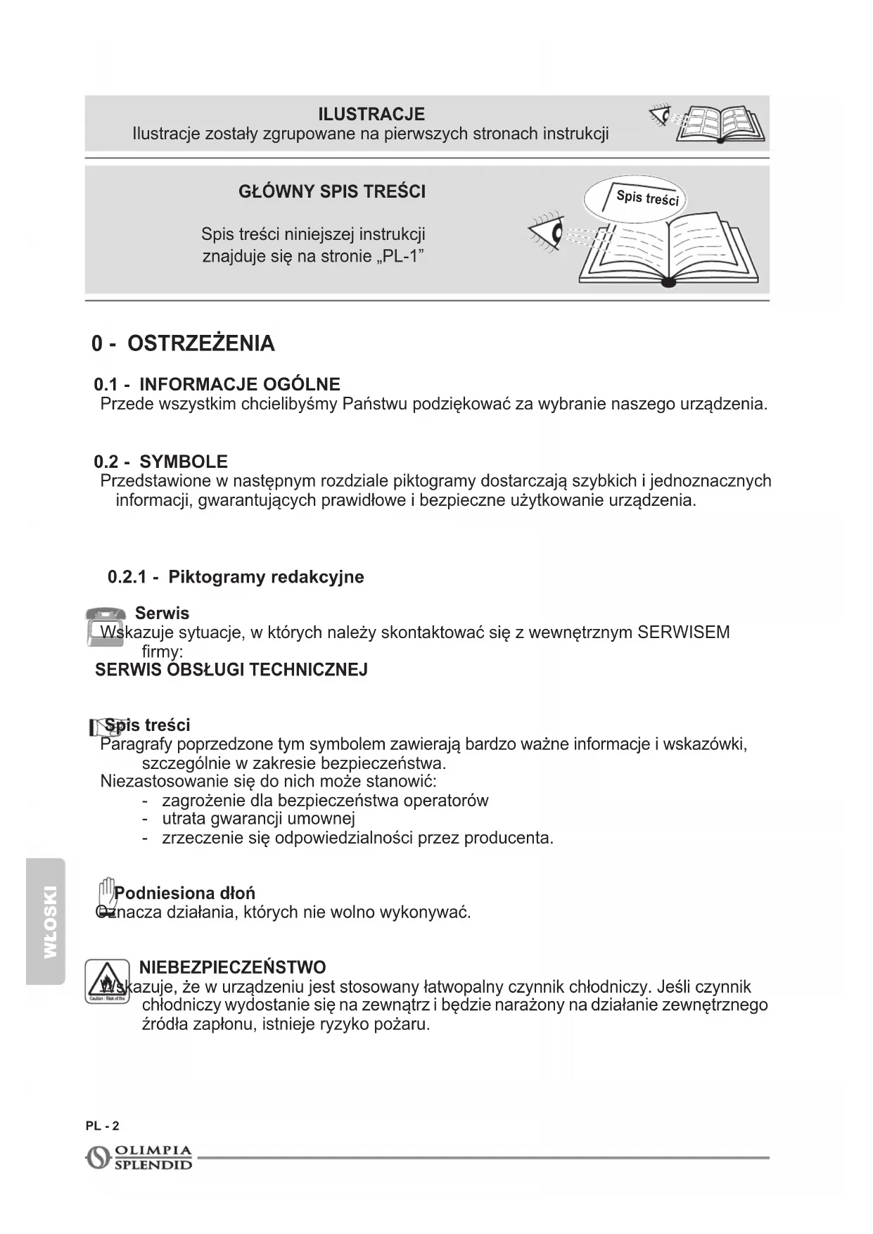 UWAGA Wskazuje,żepersonelserwisowypowinienobsługiwaćurządzeniezgodniezinstrukcją instalacji.PL - 4 WŁOSKI