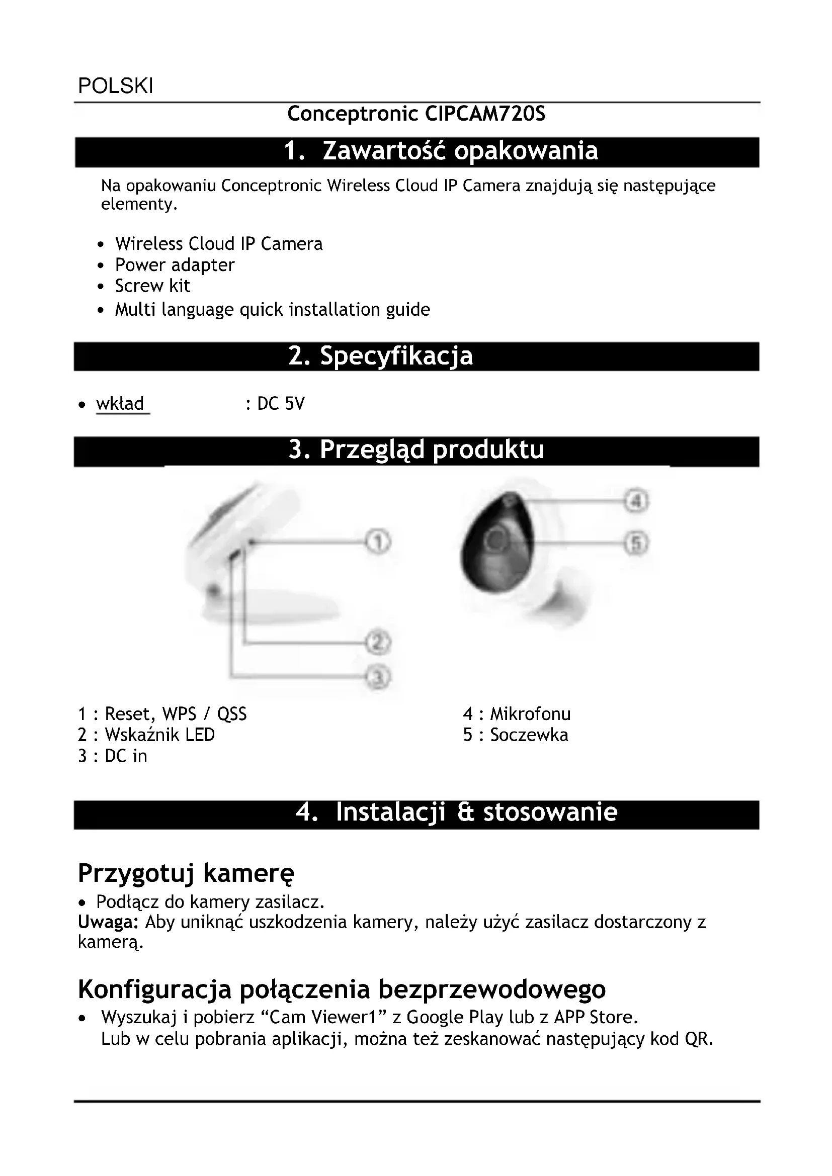 INSTRUKCJA OBSŁUGI Wireless Cloud IP Camera Mini CIPCAM720S CONCEPTRONIC