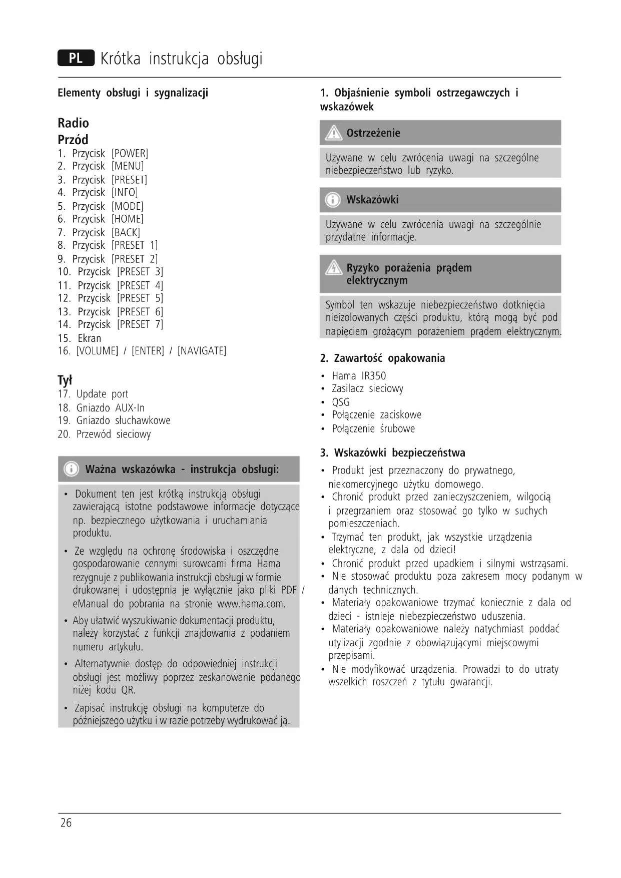 IR350M - Radio HAMA - Bezpłatna instrukcja obsługi
