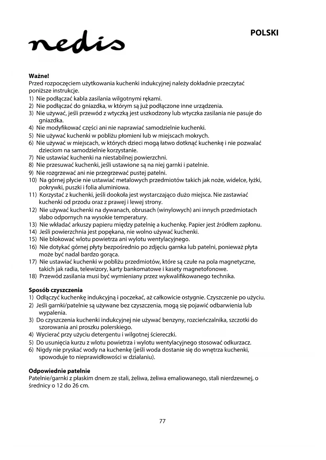 KAIP111CBK1 - Kuchenka NEDIS - Bezpłatna instrukcja obsługi