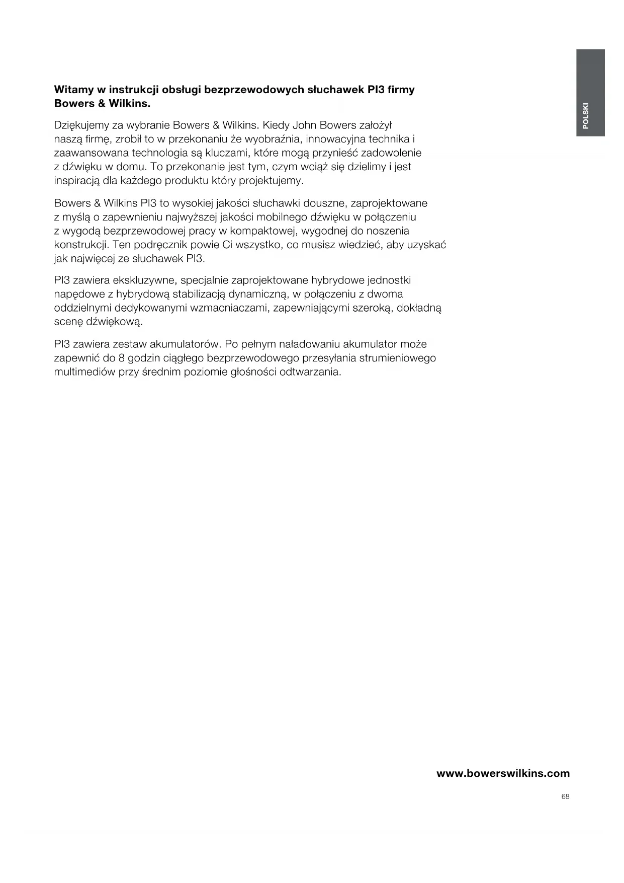INSTRUKCJA OBSŁUGI PI3 BOWERS & WILKINS