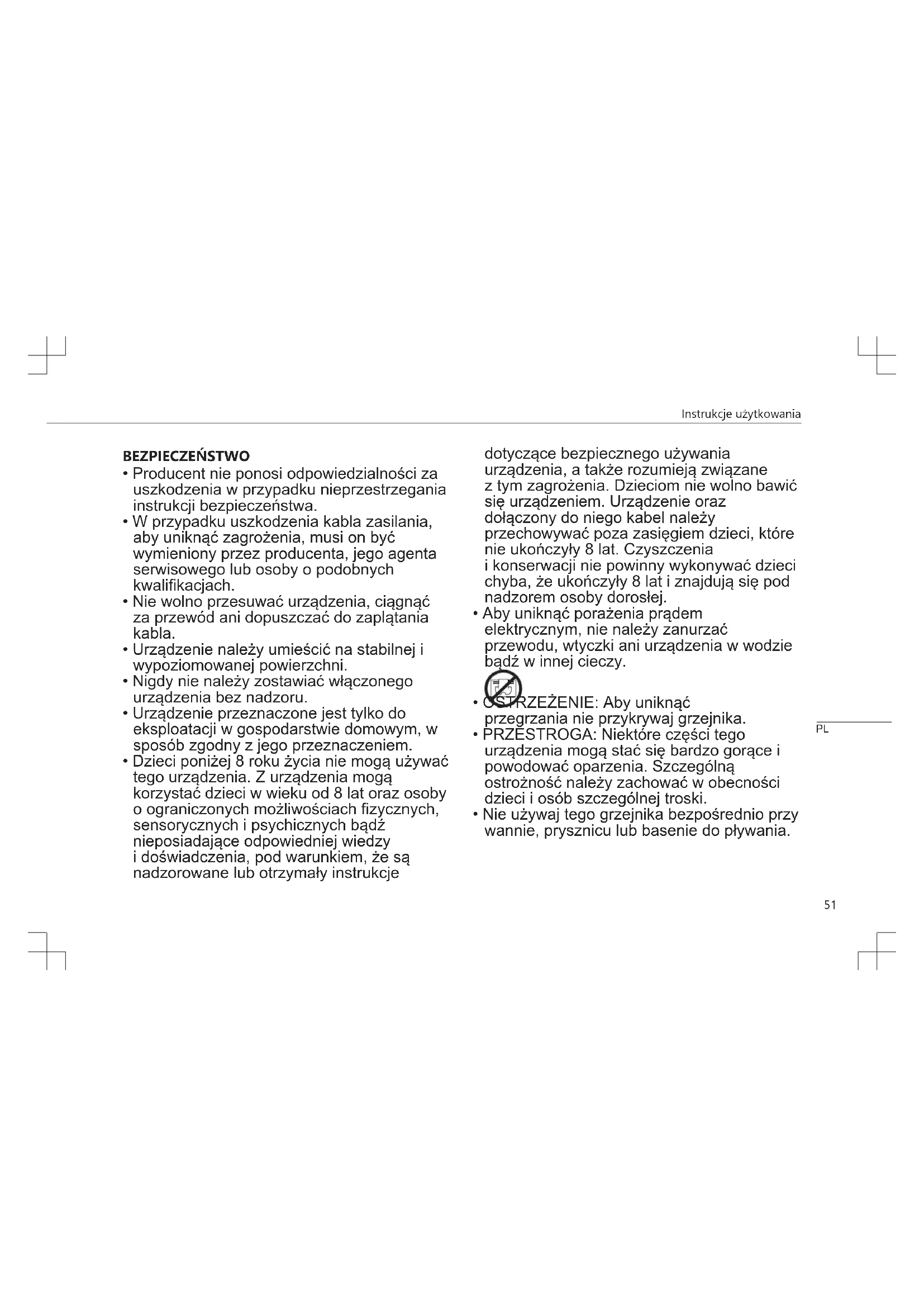 - Podczas nagrzewania i stygnięcia mogą występować odgłosy spowodowane rozszerzaniem się i kurczeniem osłony nagrzewnicy, co jest normalnym zjawiskiem i nie oznacza żadnej usterki. PLInstrukcje użytkowania