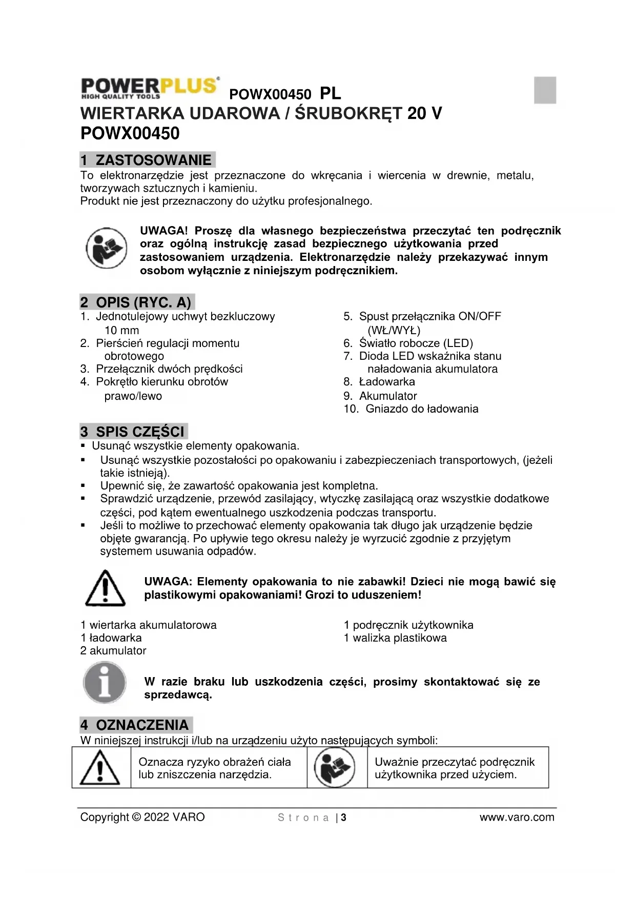 Uważnie przeczytać podręcznik użytkownika przed użyciem.POWX00450 PL Copyright © 2022 VARO S t r o n a | 4 www.varo.com