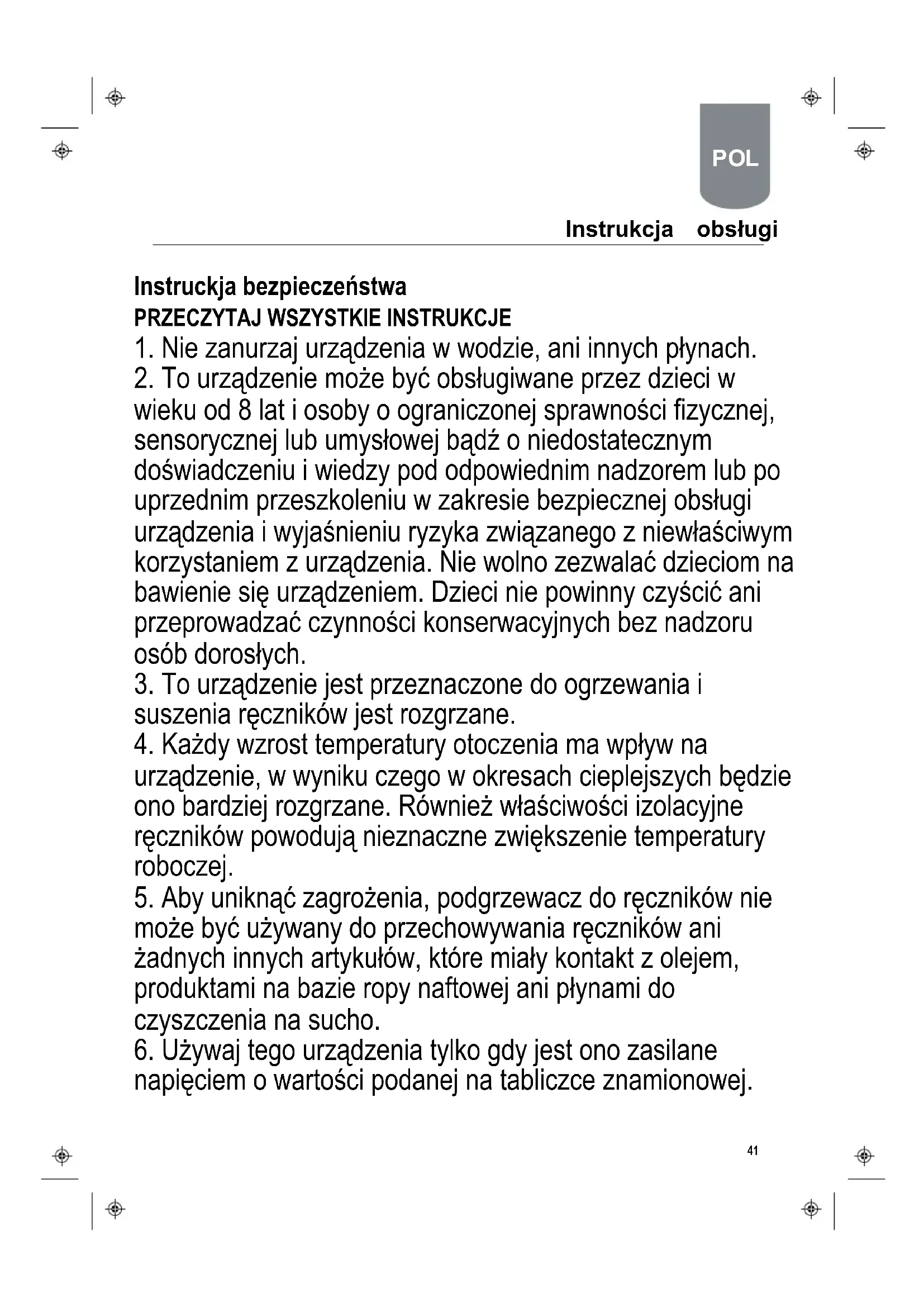 5. Aby uniknąć zagrożenia, podgrzewacz do ręczników nie