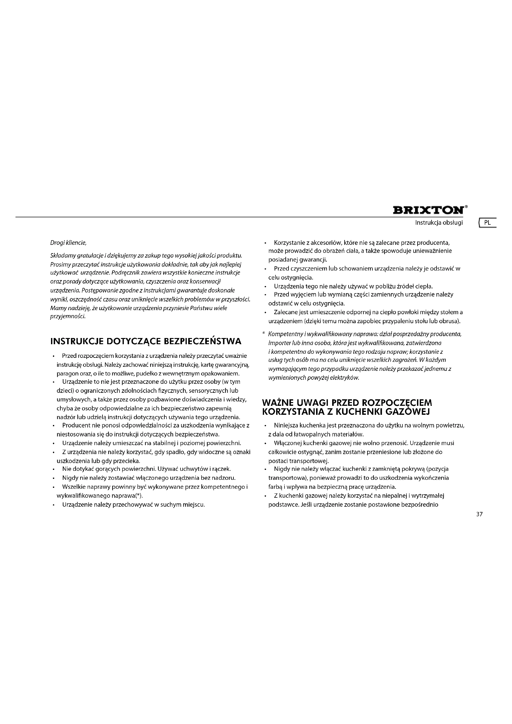 INSTRUKCJA OBSŁUGI Brixton KO6383 FireFriend