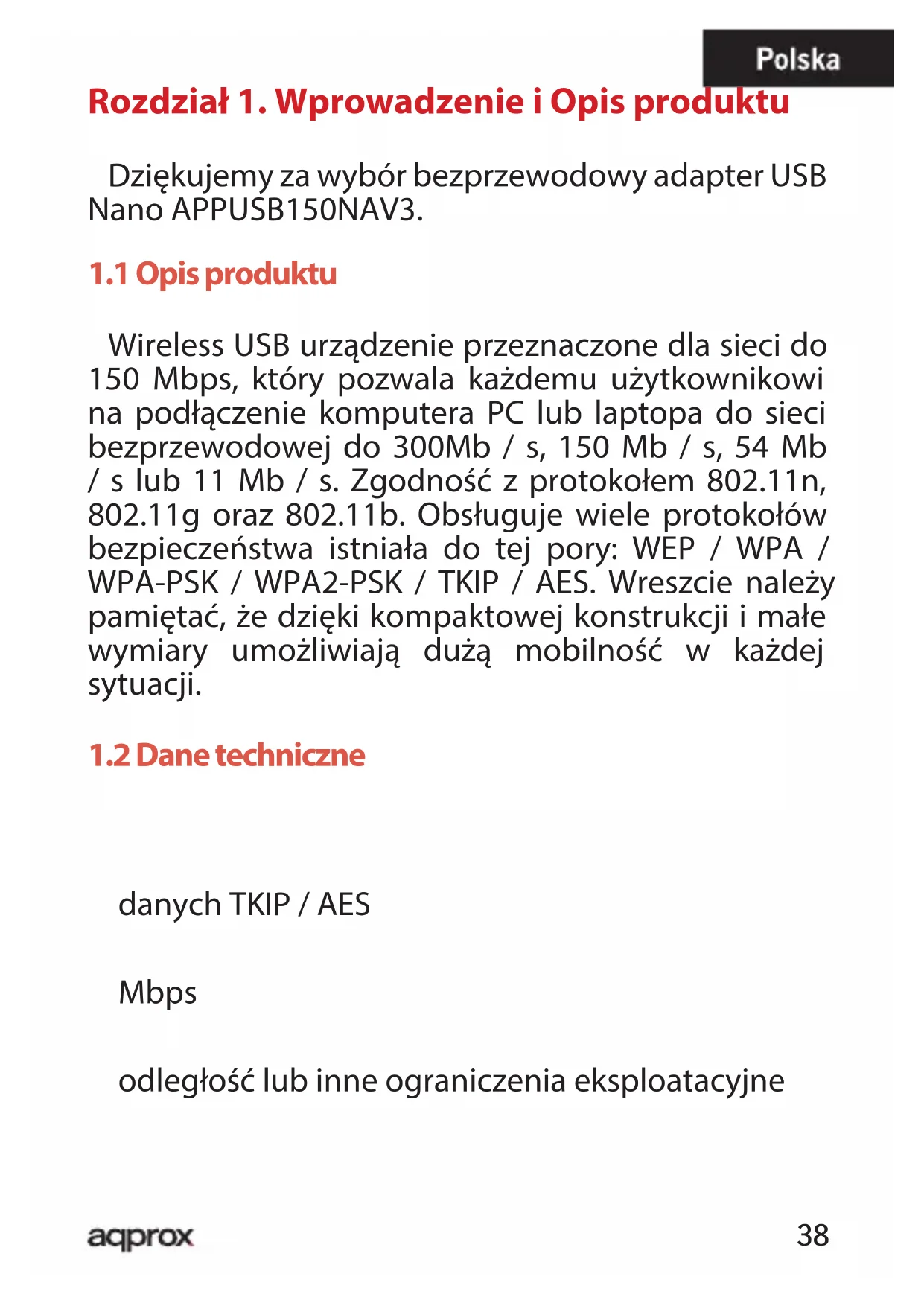 INSTRUKCJA OBSŁUGI APPUSB150NAV3 Approx