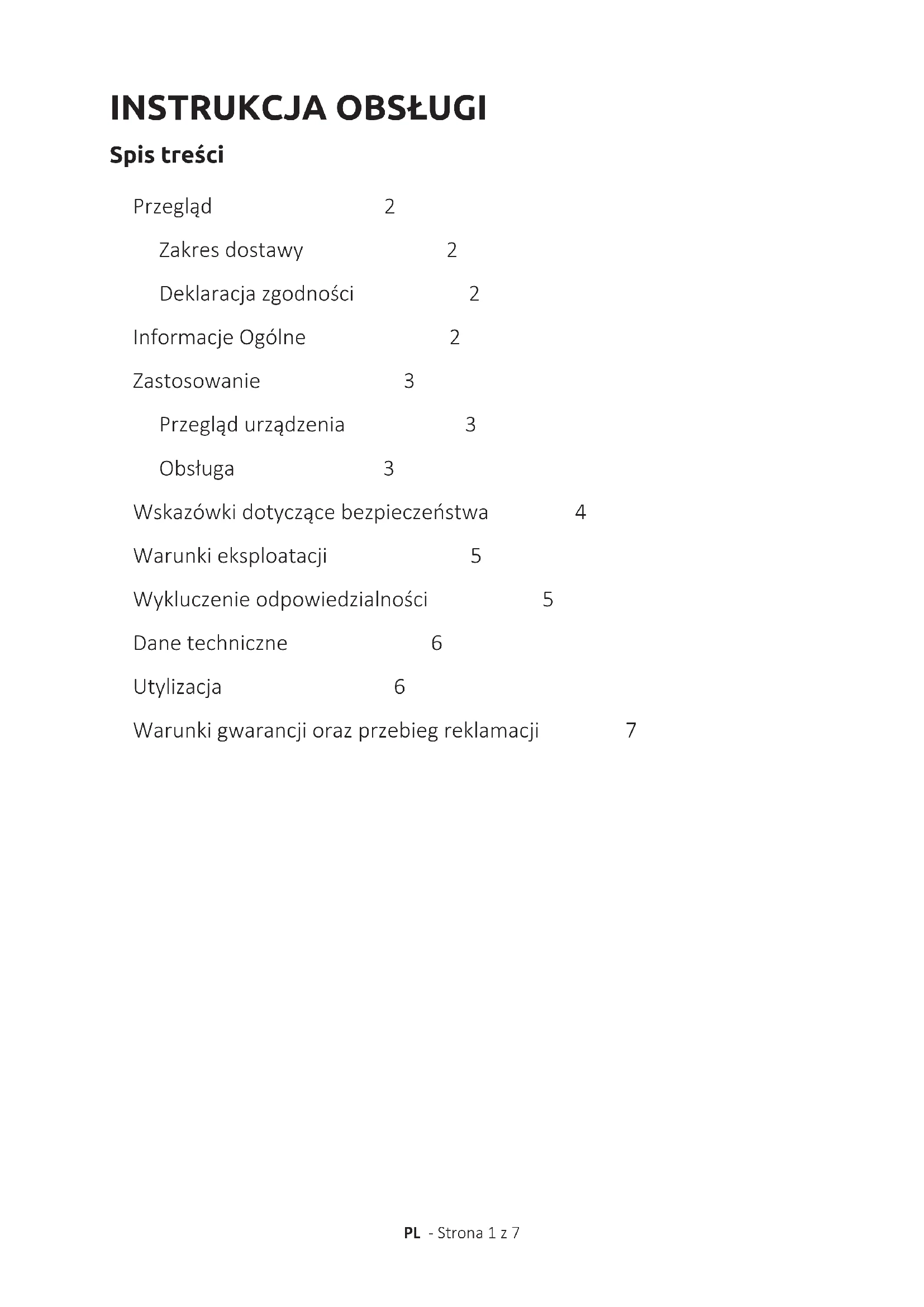 INTENSO INTERNATIONAL GMBH I Service Center (Vaš RMA broj) Kopernikusstraße 12-14 I D-49377 VechtaINSTRUKCJA OBSŁUGI PL - Strona 1 z 7 Spis treści Przegląd 2 Zakresdostawy 2 Deklaracjazgodności 2 InformacjeOgólne 2 Zastosowanie 3 Przeglądurządzenia 3 Obsługa 3 Wskazówkidotyczącebezpieczeństwa 4 Warunkieksploatacji 5 Wykluczenieodpowiedzialności 5 Danetechniczne 6 Utylizacja 6 Warunkigwarancjiorazprzebiegreklamacji 7PL -Strona2z7
