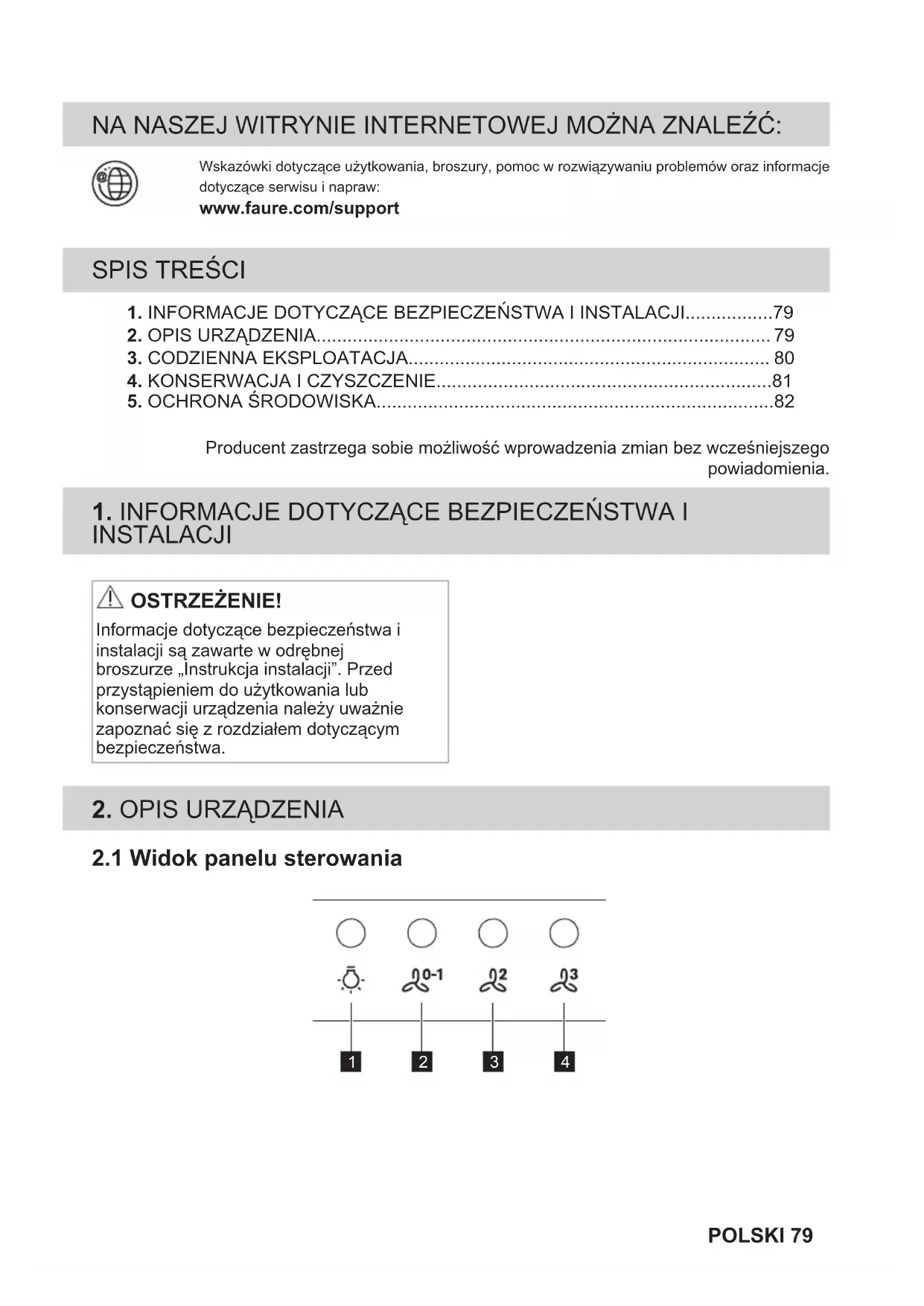 Materiały oznaczone symbolem należy poddać utylizacji. Opakowanie urządzenia włożyć do odpowiedniego pojemnika w celu przeprowadzenia recyklingu. Należy zadbać o ponowne przetwarzanie odpadów urządzeń elektrycznych i elektronicznych, aby chronić środowisko naturalne oraz ludzkie zdrowie. 82 POLSKINie wolno wyrzucać urządzeń oznaczonych symbolem razem z odpadami domowymi. Należy zwrócić produkt do miejscowego punktu ponownego przetwarzania lub skontaktować się z odpowiednimi władzami miejskimi. POLSKI 83VISITE O NOSSO WEBSITE PARA: Obter conselhos de utilização, folhetos, resolução de problemas e informações sobre assistênciae reparações: www.faure.com/support ÍNDICE
