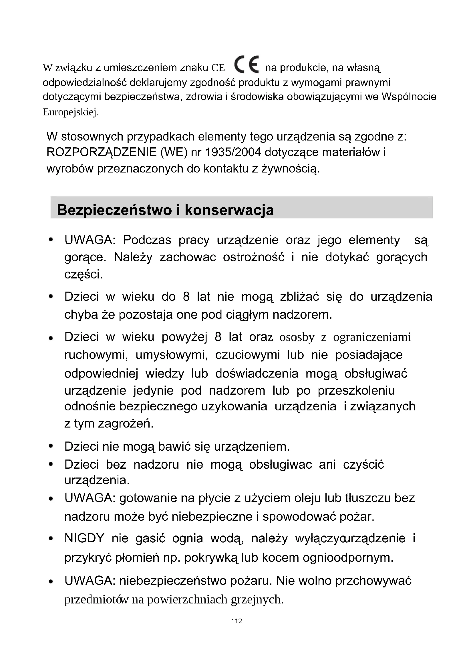 powierzchni witroceramicznych osady Nalaü na osad biaáy ocet i wyczyĞciü miĊkką szmatką Īyü specjalny Ğrodek myjący folia przylepna specjalna do witroceramiki Stopiony cukier wraz z plastykiem lub aluminium Aby usunąü pozostaáoĞci naleĪy posáuĪyü siĊ specjalnym drapakiem z ostrzem do zabezpieczyü szkáo najlepiej jest uĪywaü produkt na bazie sylikonu) folia przylepna specjalna do witroceramiki Uwaga: przed rozpoczĊciem czyszczenia odáączyü urządzenie z zasilania. Sygalizacja usterek i czynnoĞci kontrolne W momencie pojawienia siĊ nieprawidáowoĞci indukcyjna páyta grzejna wprowadza automatycznie funkcjĊ zabezpieczenia a na wyĞwietlaczu pojawiają siĊ nastĊpujące kody: Problem MoĪliwe przyczyny Rozwiązanie F0/F1/F2 Usterka w wiatraku skontaktowaü siĊ z serwisem F3-F8 Usterka w czujniku temperatury skontaktowaü siĊ z serwisem E1/E2 Nieprawidáowe napiĊcie elektryczne sprawdziü czy wáączone jest zasilanie elektryczne. Po sprawdzeniu ponownie wáączyü urządzenie E3/E4 Nieprawidáowa temperatura sprawdziü garnek E5/E6 Niewystarczające emitowanie ciepáa po wczeĞniejszym oziĊbieniu ponownie wáączyü urządzenie Jest to tylko lista najczĊĞciej pojawiających siĊ usterek. Zabrania siĊ rozmontowywania indukcyjnej páyty grzejnej we wáasnym zakresie co mogáoby doprowadziü do wyrządzenia wiĊkszych szkód. SERWIS TECHNICZNY Przed wezwaniem serwisu . W przypadku nie dziaáania produktu zalecamy: — sprawdziü czy wtyczka zostaáa prawidáowo wprowadzona do gniazdka sieciowego; — sprawdziü powyĪej przedstawioną tabelĊ usterek. W przypadku gdy nie zostanie wykryta przyczyna nieprawidáowego funkcjonowania naleĪy odáączyü urządzenie bez rozmontowywania go i nastĊpnie skontaktowaü siĊ z Serwisem Technicznym . specjalna g bka do i wysuszy do powierzchni , lub u powierzchni witroceramicznych (aby 122Deklaracja specjalna Caáa treĞü niniejszej instrukcji obsáugi zostaáa uwaĪnie sprawdzona. Producent nie bierze na siebie odpowiedzialnoĞci za báedy lub ominiĊcia w fazie wydruku. Producent zastrzega sobie prawo do wprowadzania zmian natury technicznej bez koniecznoĞci wczeĞniejszego powiadomienia. ZdjĊcie produktu odnosi siĊ do jego aktualnej wersji. UWAGA: zabrania siĊ traktowania tego produktu jako odpadów normalnych. Musi on zostaü usuniĊty oddzielnie. Niniejsze urządzenie gospodarstwa domowego wyprodukowane zostaáo zgodnie z dyrektywą europejską 20 12/19/KE dotyczącą zuĪytego sprzĊtu elektrycznego i elektronicznego. Zapewniając wáaĞciwy sposób realizacji niniejszego sprzĊtu w poszanowaniu obowiązujących dyrektyw, uĪytkownik zapobiega jego potencjalnemu niegatywnemu wpáywowi na Ğrodowisko naturalne i zdrowie ludzi, który mógáby byü efektem niewáaĞciwego obchodzenia siĊ z produktem. Symbol ten wskazuje, Īe produkt nie moĪe byü traktowany jako odpady domowe lecz powinien byü przekazany do odpowiedniego punktu zbierającego odpady elektryczne i elektroniczne. Szczegóáowe informacje dotyczące postĊpowania, odzyskiwania i recyklingu niniejszego produktu moĪna uĪyskaü od lokanych sáuĪb odpowiedzialnych za odpady lub w sklepie, w którym zakupiono produkt. POLAND POLISH 123ɉɪɚɜɢɥɚ ɬɟɯɧɢɤɢ ɛɟɡɨɩɚɫɧɨɫɬɢ ɢ ɬɟɯɨɛɫɥɭɠɢɜɚɧɢɟ ɂɫɩɨɥɶɡɨɜɚɬɶ ɨɬɞɟɥɶɧɵɣ ɩɪɟɞɨɯɪɚɧɢɬɟɥɶɧɵɣ