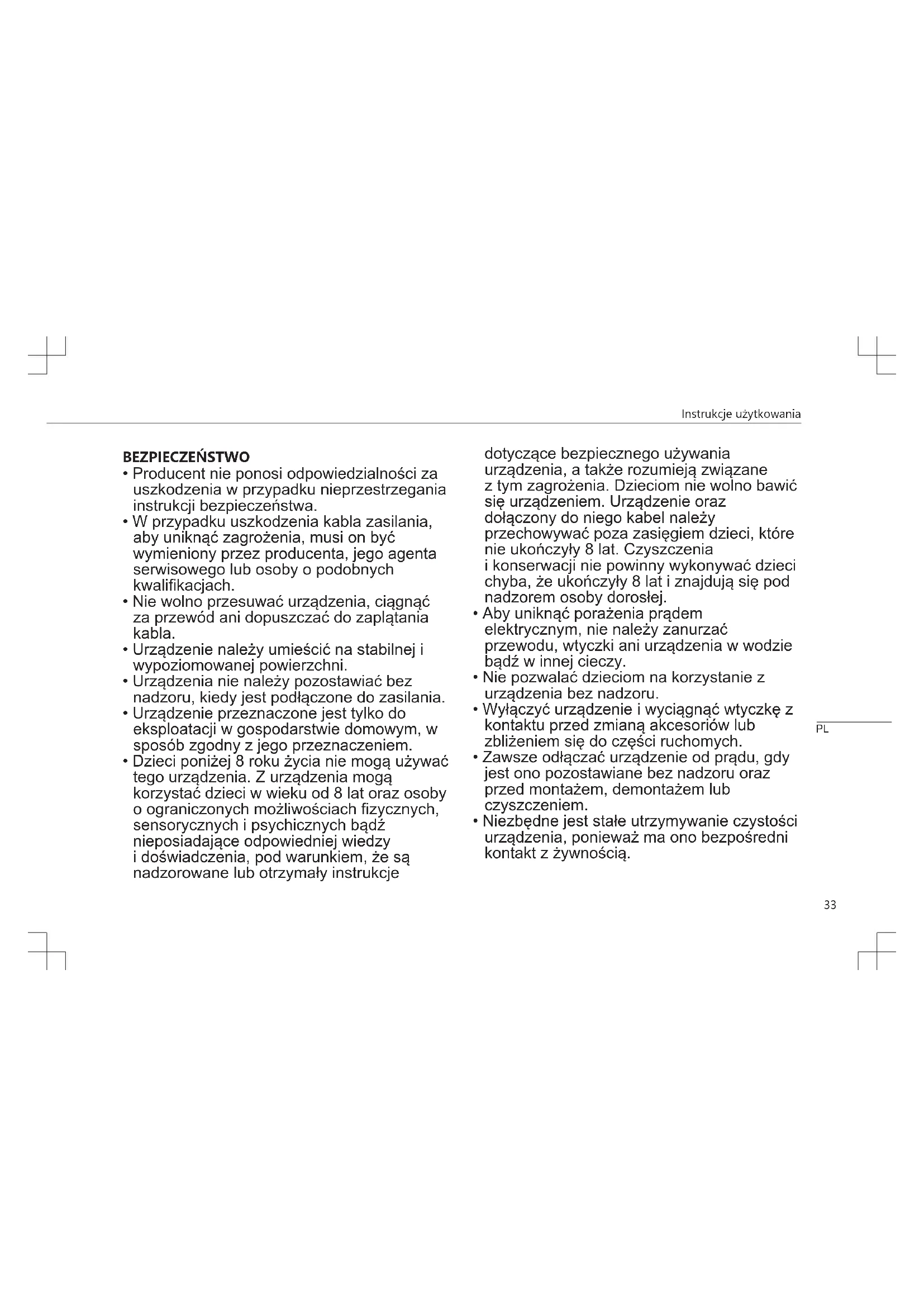 - Dzieci poniżej 8 roku życia nie mogą używać tego urządzenia. Zurządzenia mogą korzystać dzieci wwieku od 8 lat oraz osoby oograniczonych możliwościach fizycznych, sensorycznych ipsychicznych bądź nieposiadające odpowiedniej wiedzy idoświadczenia, pod warunkiem, że są nadzorowane lub otrzymały instrukcje dotyczące bezpiecznego używania urządzenia, atakże rozumieją związane ztym zagrożenia. Dzieciom nie wolno bawić się urządzeniem. Urządzenie oraz dołączony do niego kabel należy przechowywać poza zasięgiem dzieci, które nie ukończyły 8 lat. Czyszczenia ikonserwacji nie powinny wykonywać dzieci chyba, że ukończyły 8 lat iznajdują się pod nadzorem osoby dorosłej.