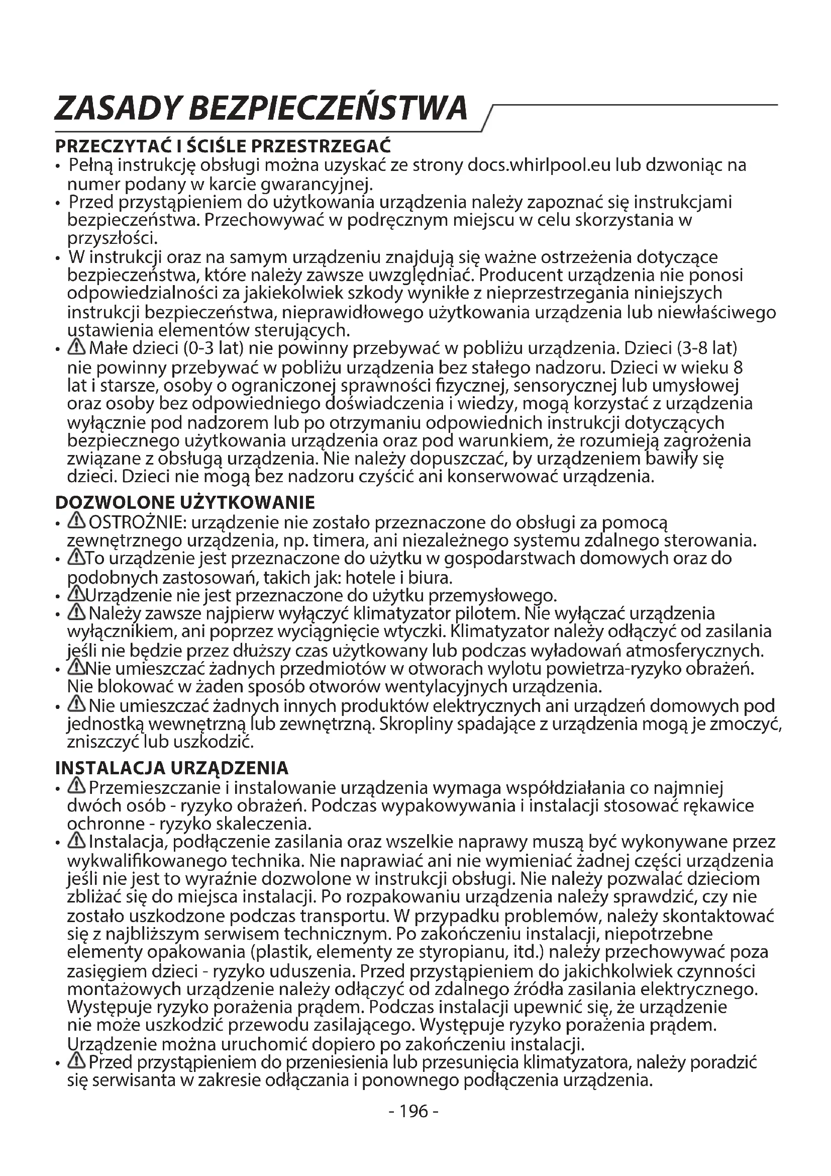 - Pełną instrukcję obsługi można uzyskać ze strony docs.whirlpool.eu lub dzwoniąc na numer podany w karcie gwarancyjnej.