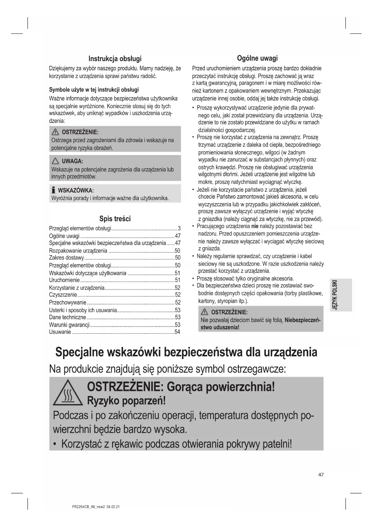 - Korzystać z rękawic podczas otwierania pokrywy patelni!FR2264CB_IM_new2 04.02.21