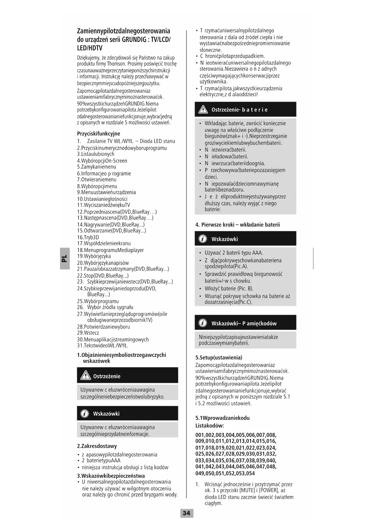 - Trzymać pilota, jak wszystkie urządzenia elektryczne, zdala od dzieci! Ostrzeżenie -baterie