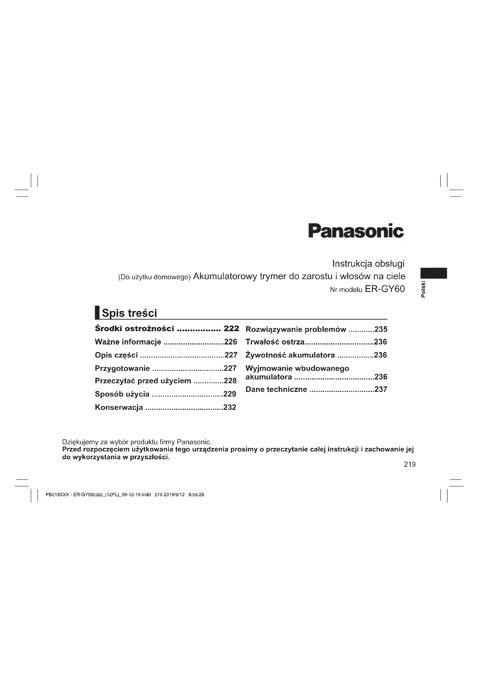 Należy natychmiast zasięgnąć porady lekarza. PB018XXX - ER-GY60_(12PL)_09-12-19.indd 225 2019/9/12 8:55:29226 Polski