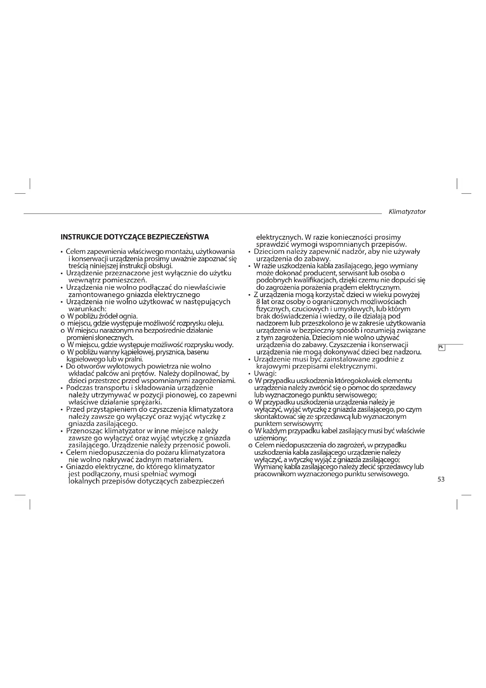 - Celem niedopuszczenia do pożaru klimatyzatora nie wolno nakrywać żadnym materiałem.