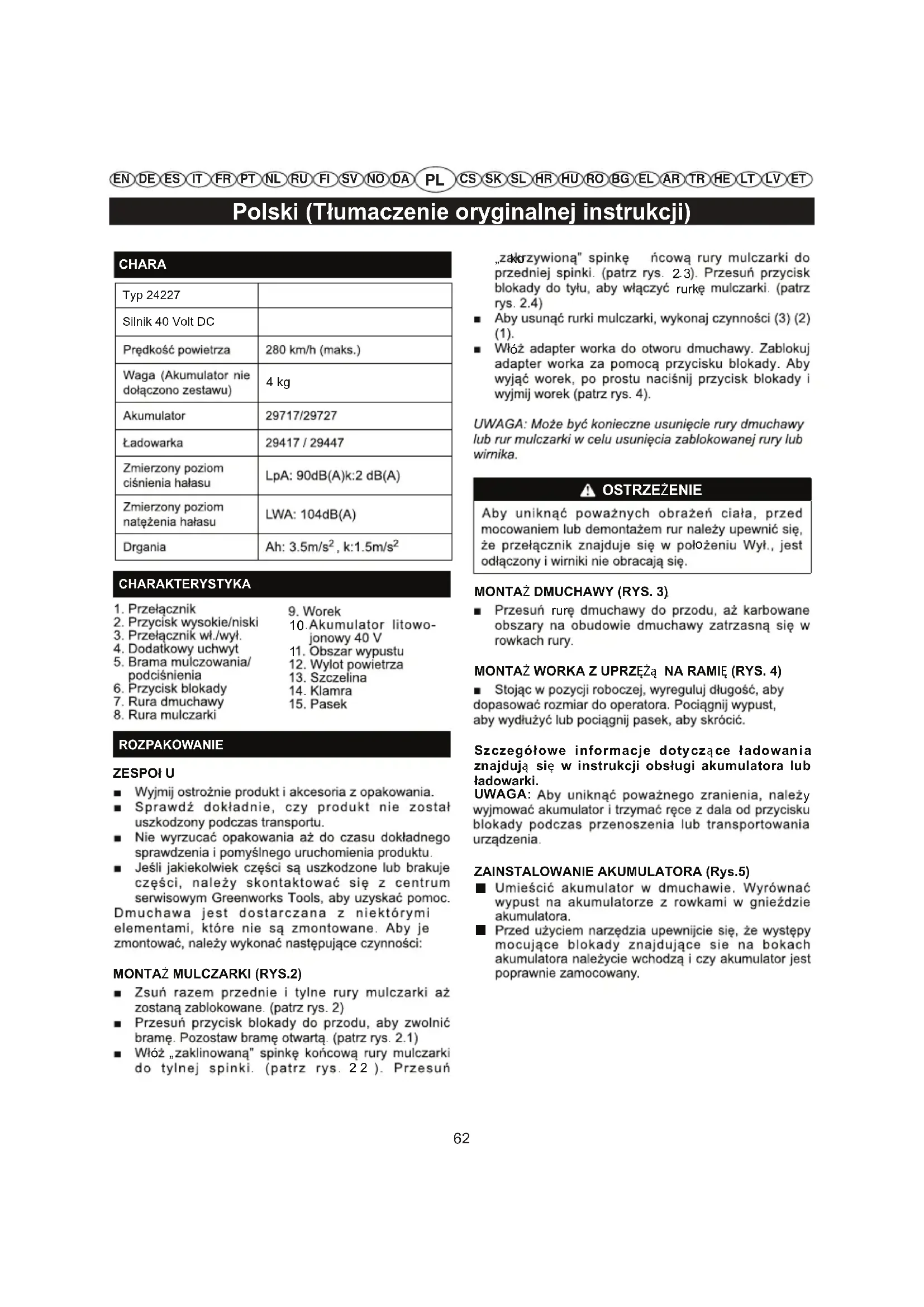 INSTRUKCJA OBSŁUGI GD40BV GREENWORKS