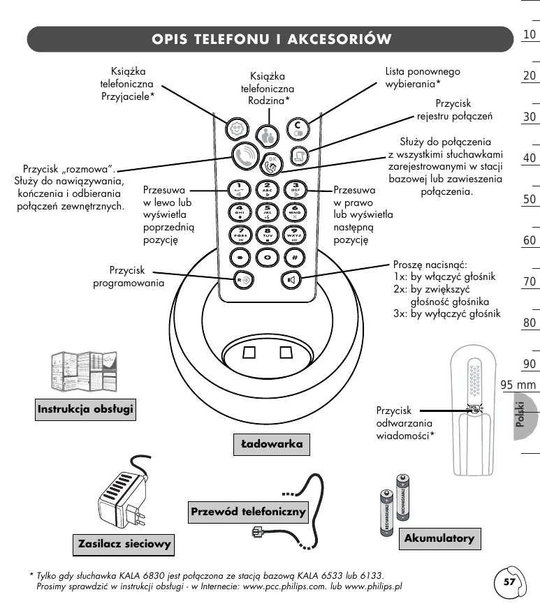 - Tylko gdy s∏uchawka KALA 6830 jest po∏àczona ze stacjà bazowà KALA 6533 lub 6133. Prosimy sprawdziç w instrukcji obs∏ugi - w Internecie: www.pcc.philips.com. lub www.philips.pl Akumulatory