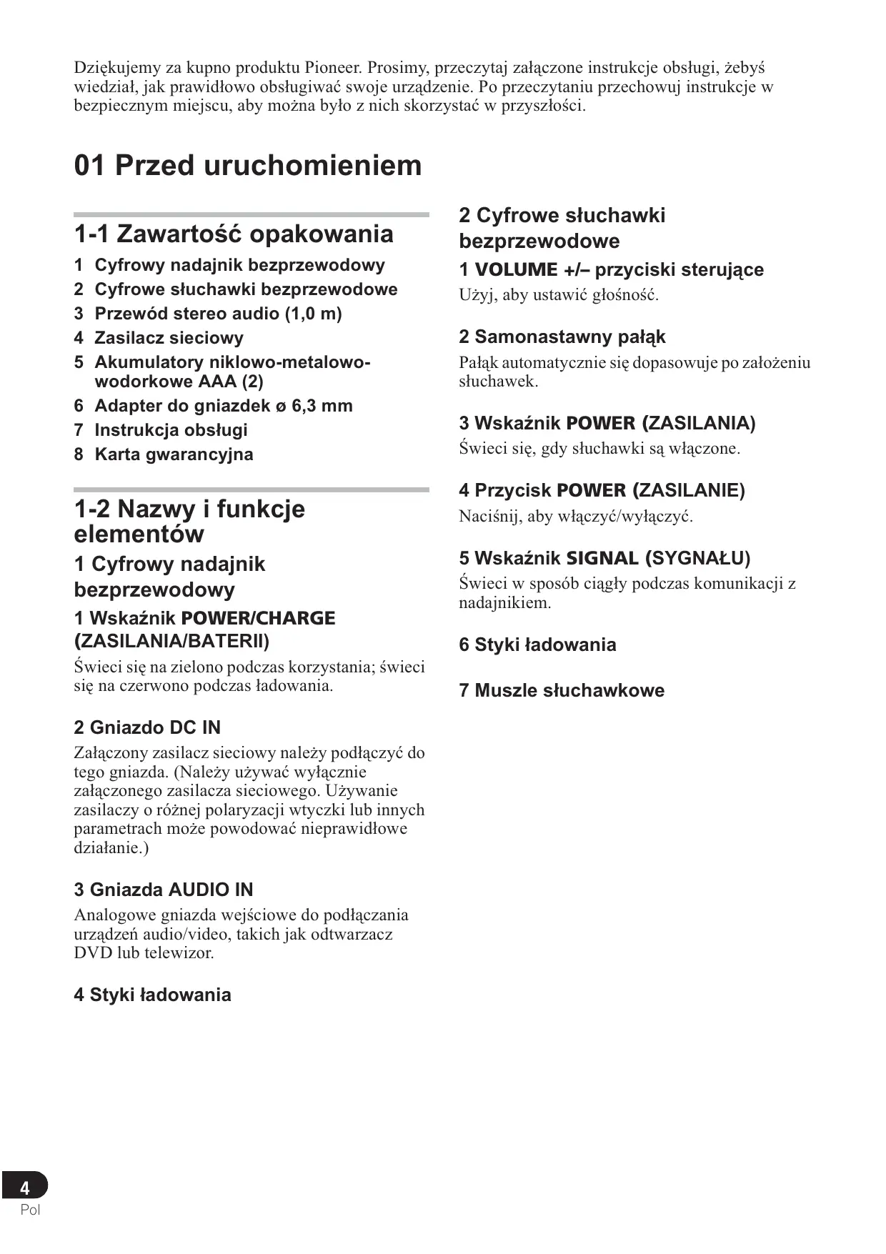 DziĊkujemy za kupno produktu Pioneer. Prosimy, przeczytaj zaáączone instrukcje obsáugi, ĪebyĞ wiedziaá, jak prawidáowo obsáugiwaü swoje urządzenie. Po przeczytaniu przechowuj instrukcje w bezpiecznym miejscu, aby moĪna byáo z nich skorzystaü w przyszáoĞci.