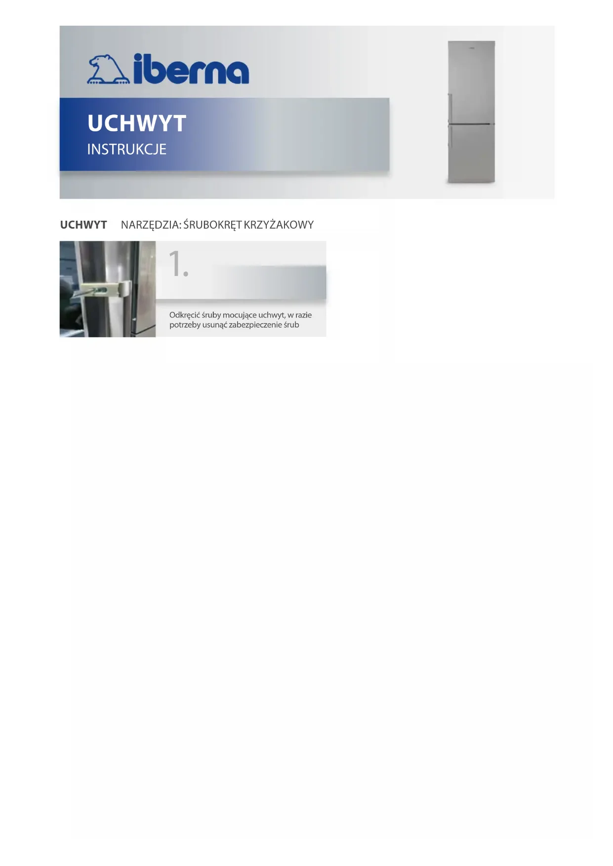 LADEUCHWYT NARZĘDZIA: ŚRUBOKRĘT KRZYŻAKOWY UCHWYT INSTRUKCJE Odkręcić śruby mocujące uchwyt, w razie potrzeby usunąć zabezpieczenie śrub 1.USZCZELKA DRZWI USZCZELKA DRZWI INSTRUKCJE Otworzyć drzwi