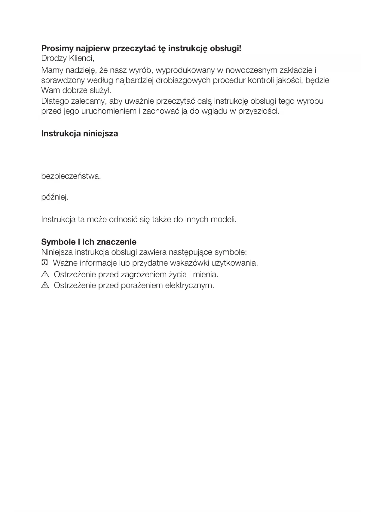 - Prosimy przeczytać także inne dokumenty dostarczone wraz z lodówką. Instrukcja ta może odnosić się także do innych modeli. Symbole i ich znaczenie Niniejsza instrukcja obsługi zawiera następujące symbole: C Ważne informacje lub przydatne wskazówki użytkowania. A Ostrzeżenie przed zagrożeniem życia i mienia. B Ostrzeżenie przed porażeniem elektrycznym.PL