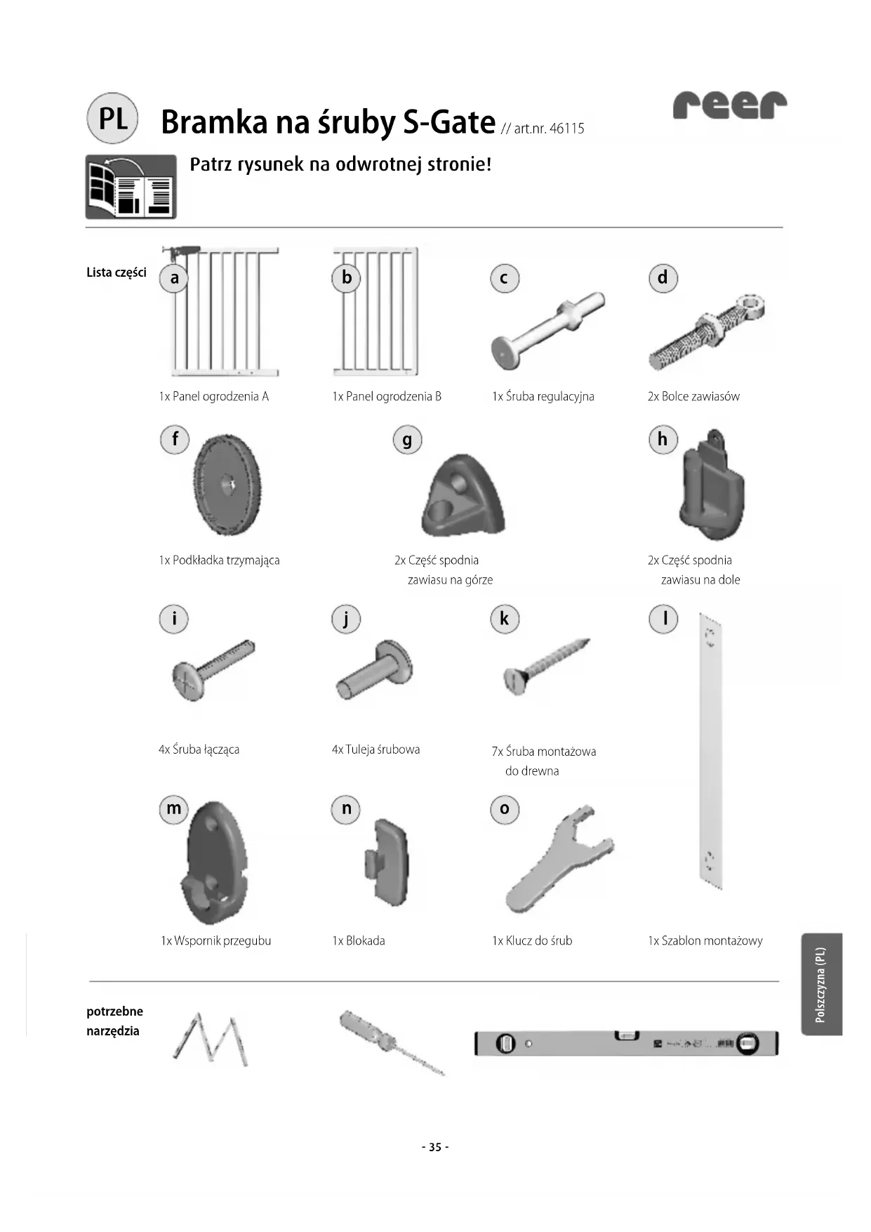 SGate - Barierka zabezpieczająca dla dzieci Reer - Bezpłatna instrukcja obsługi
