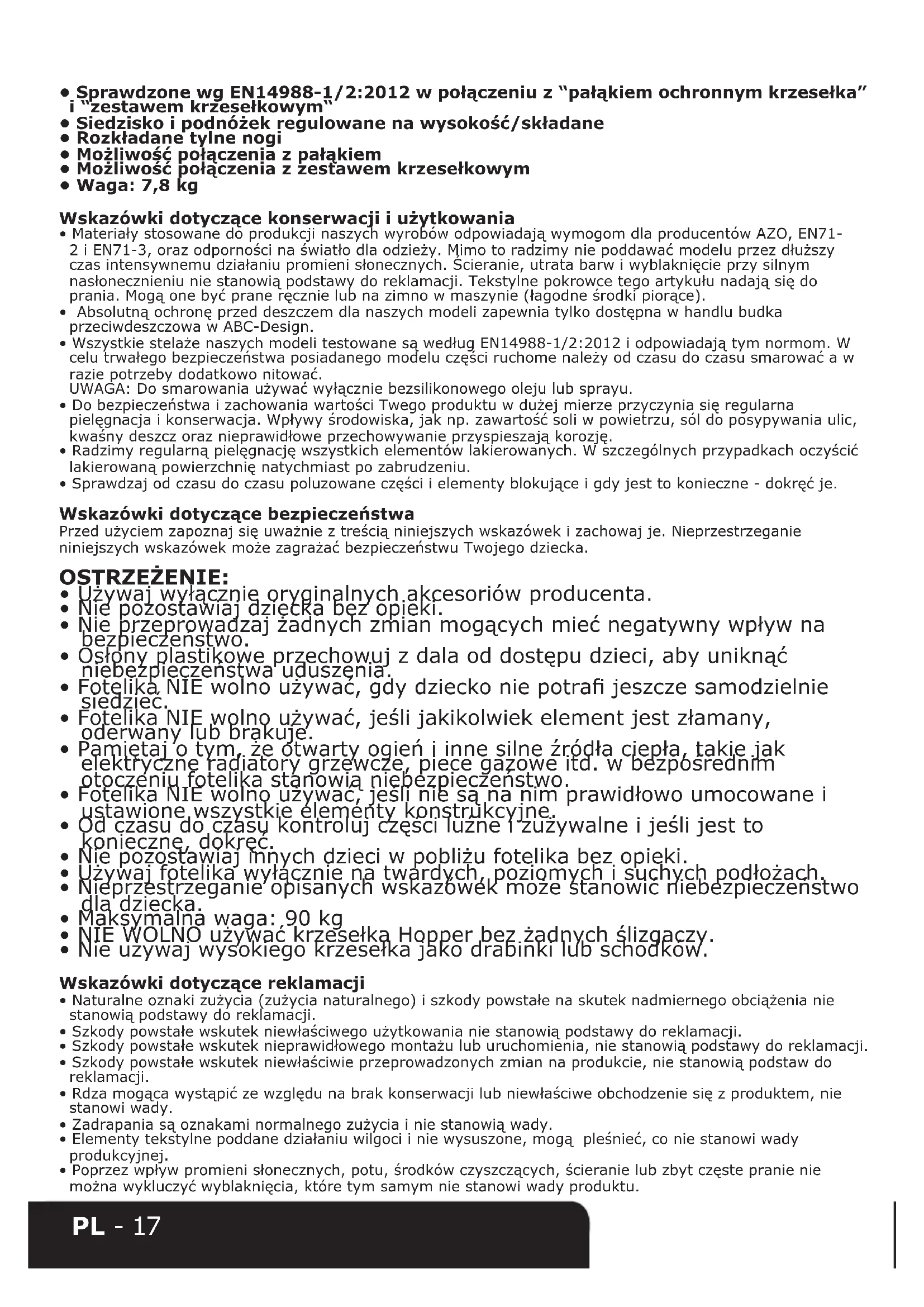 Hopper - Krzesełko do karmienia ABC DESIGN - Bezpłatna instrukcja obsługi