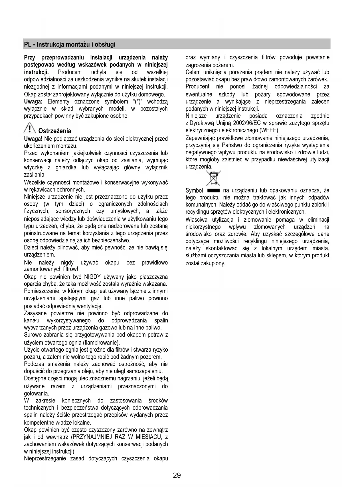 RHC 940 PN - Okap kuchenny ROSIERES - Bezpłatna instrukcja obsługi