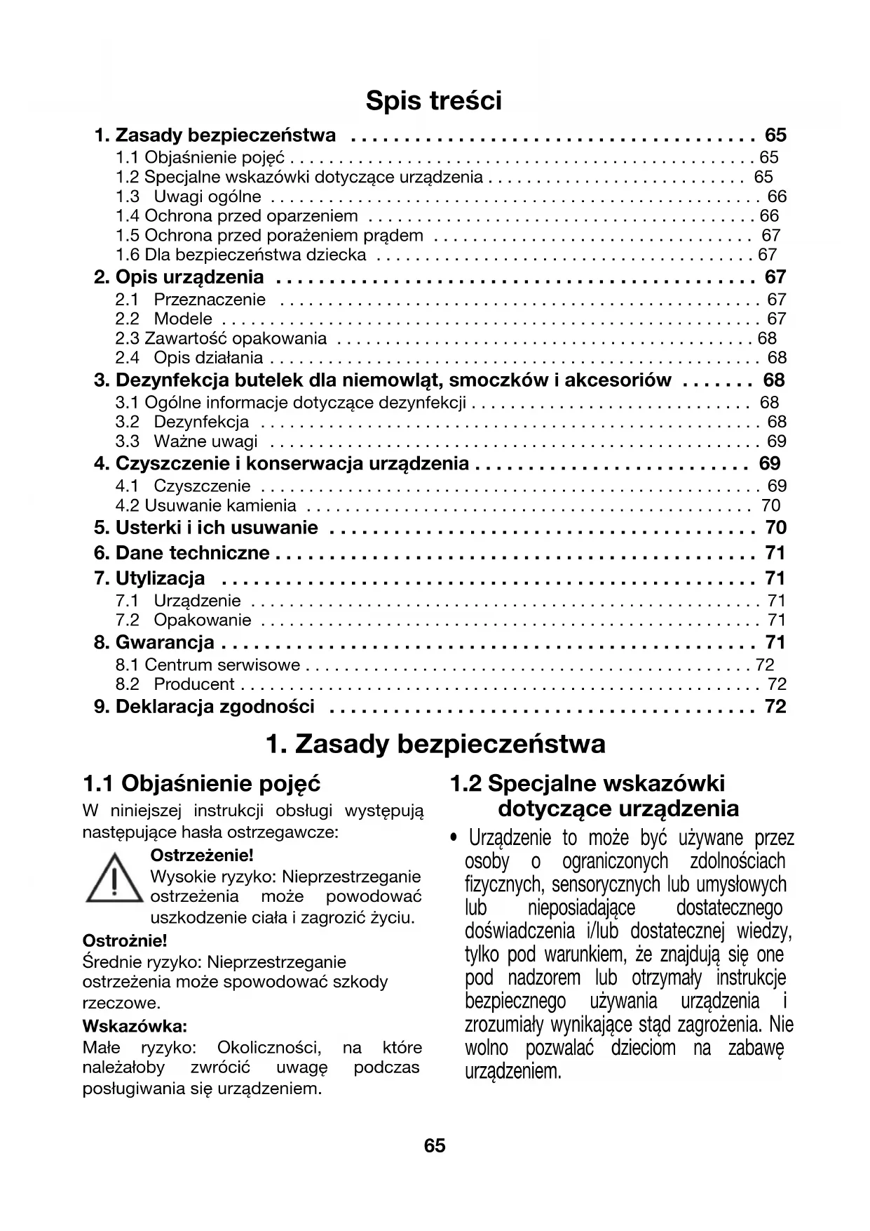 3. Dezynfekcja butelek dla niemowląt, smoczków i akcesoriów . . . . . . . 68
