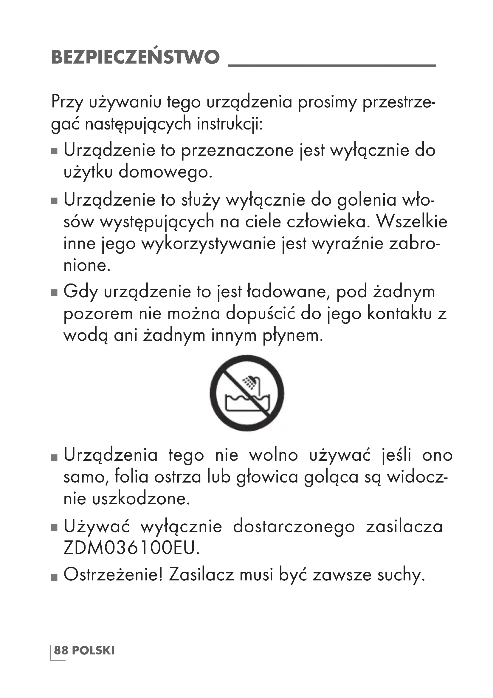 Urządzenie to służy wyłącznie do golenia wło- sów występujących na ciele człowieka. Wszelkie inne jego wykorzystywanie jest wyraźnie zabro- nione.