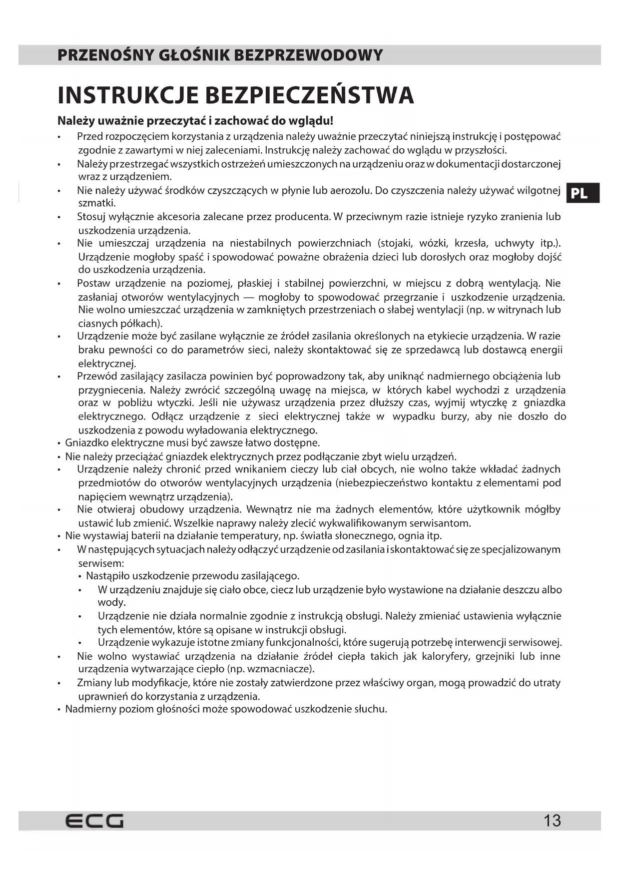 - Przed Rozpoczeciem korzystania z urzadzenia nalezy uwaźne przyȩczytań niniejsza instrukcje i postepowa zgodnia z zawartymi wnej zaleceniami. Instrukcje nalezy zachowania do wgladu w przyszłość.