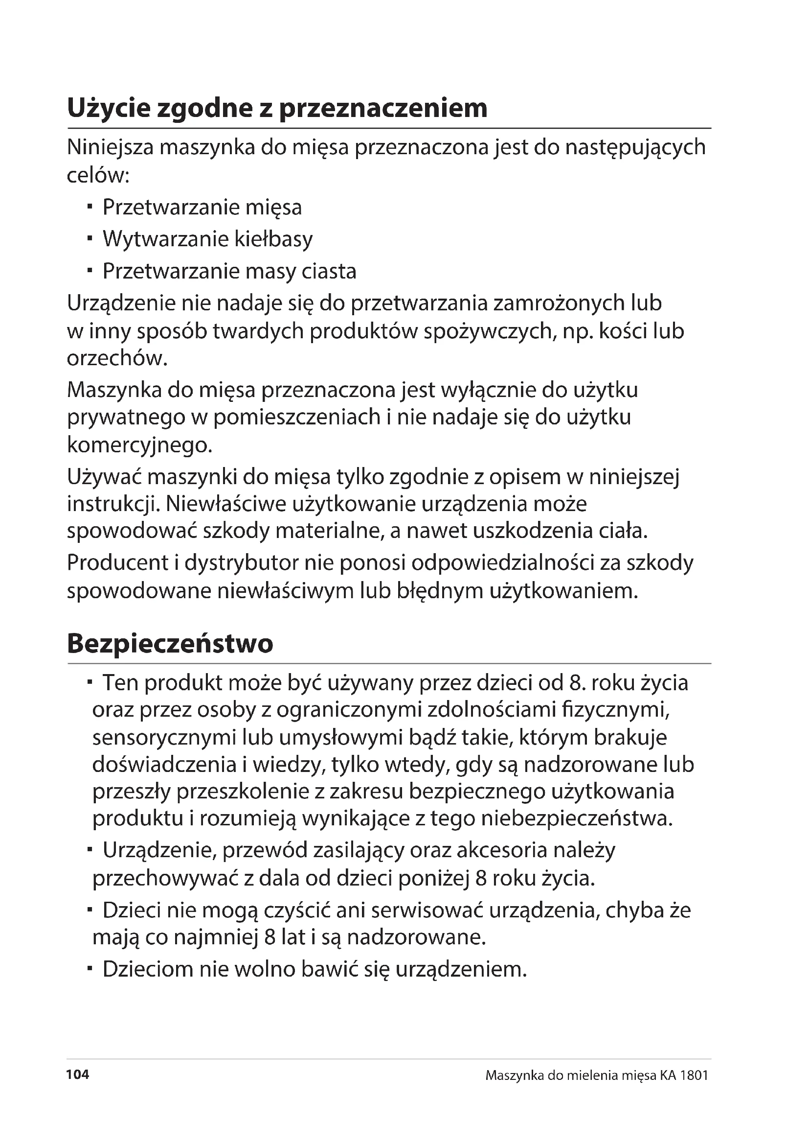 Używać maszynki do mięsa tylko zgodnie z opisem w niniejszej instrukcji. Niewłaściwe użytkowanie urządzenia może spowodować szkody materialne, a nawet uszkodzenia ciała.