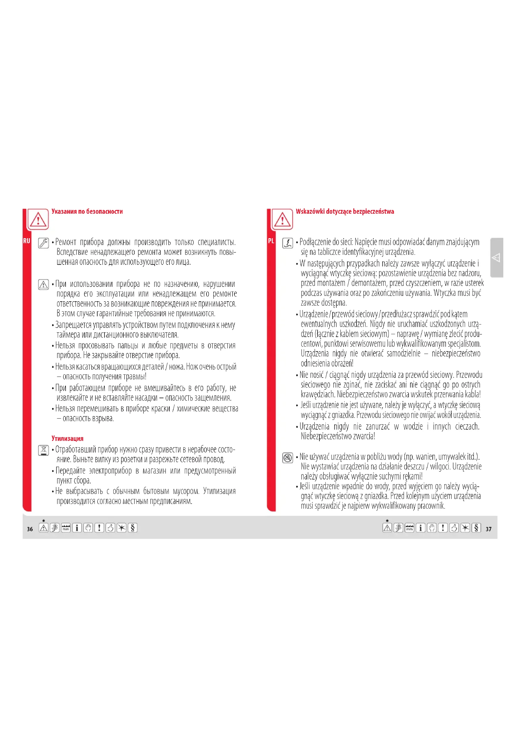 - Urządzenia nigdy nie zanurzać w wodzie i innych cieczach. Niebezpieczeństwo zwarcia!