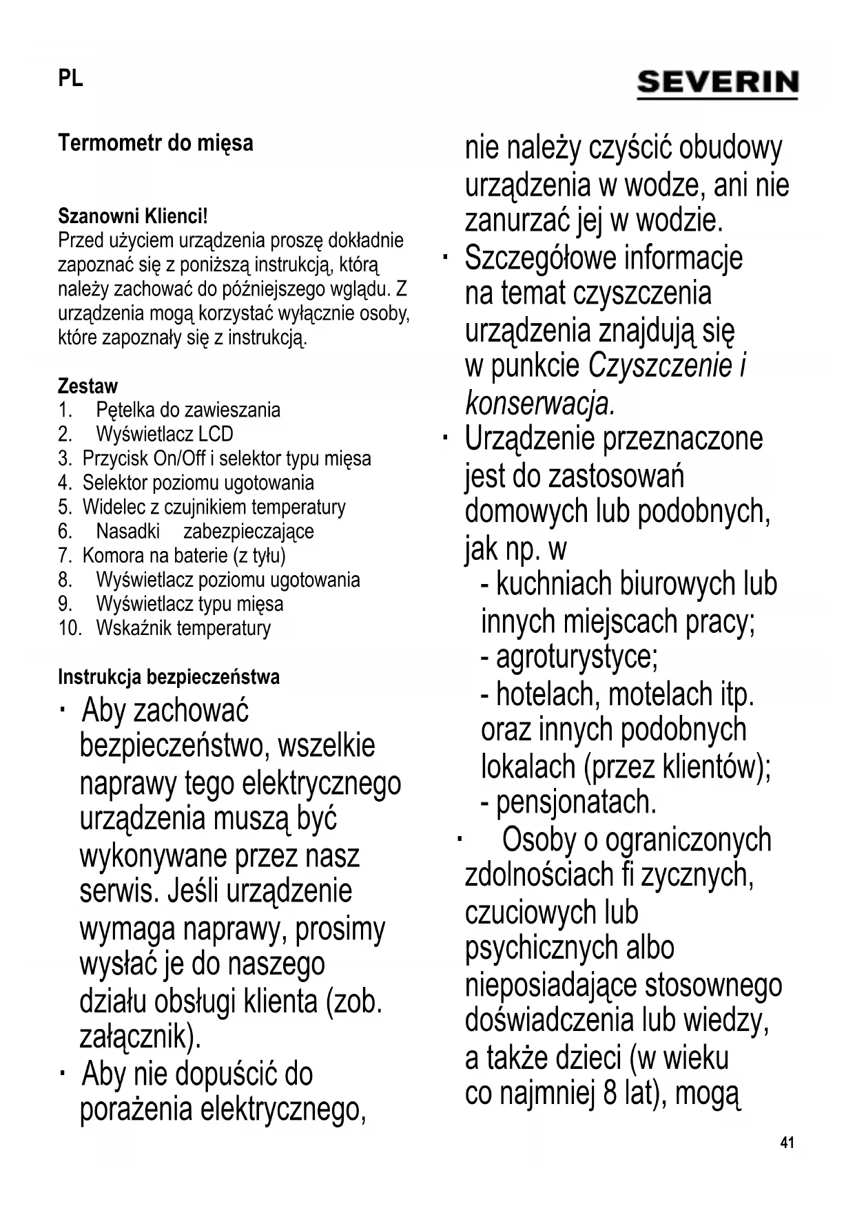 FT 9629 - Termometr do żywności SEVERIN - Bezpłatna instrukcja obsługi