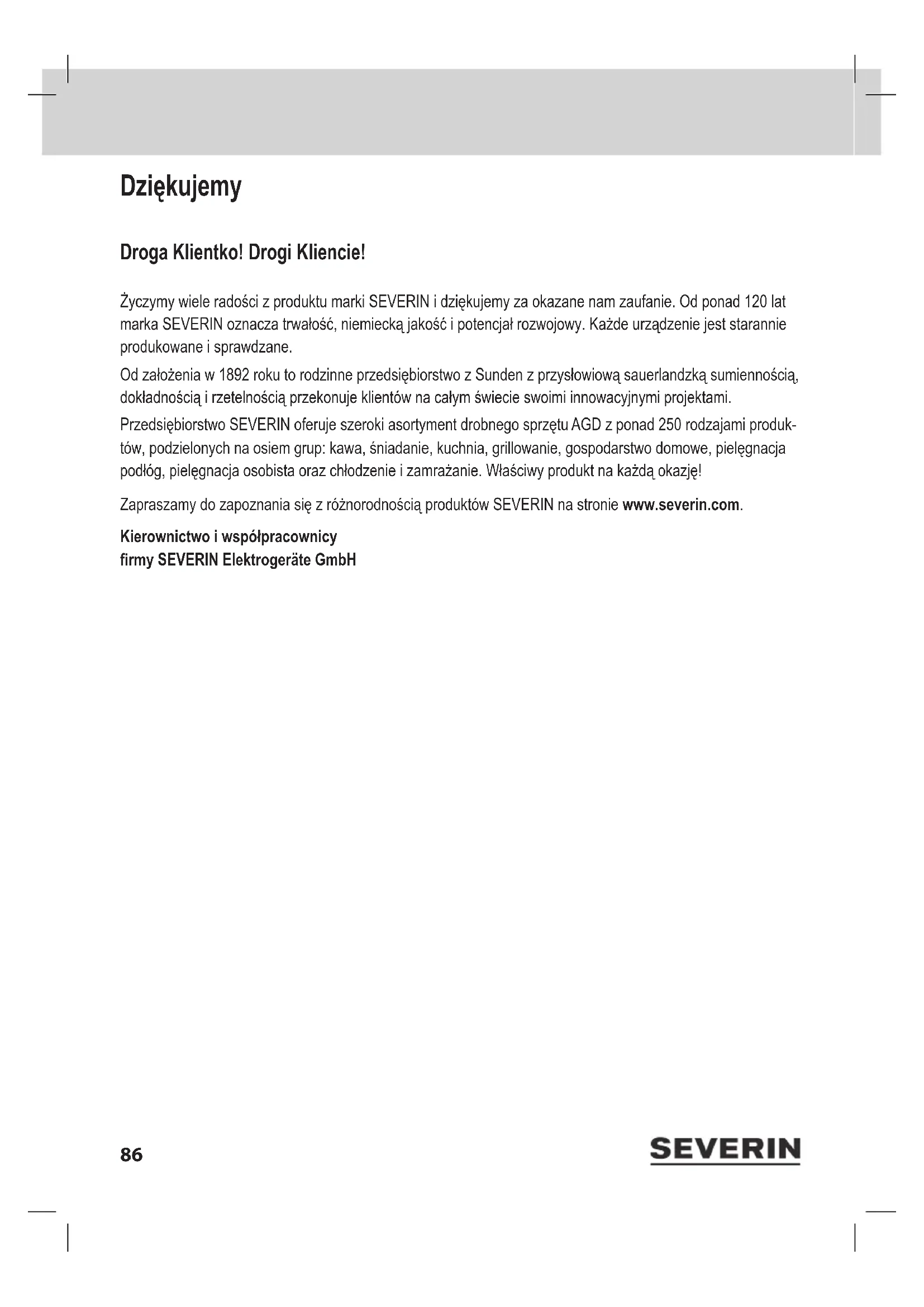 INSTRUKCJA OBSŁUGI CY 7086 SEVERIN