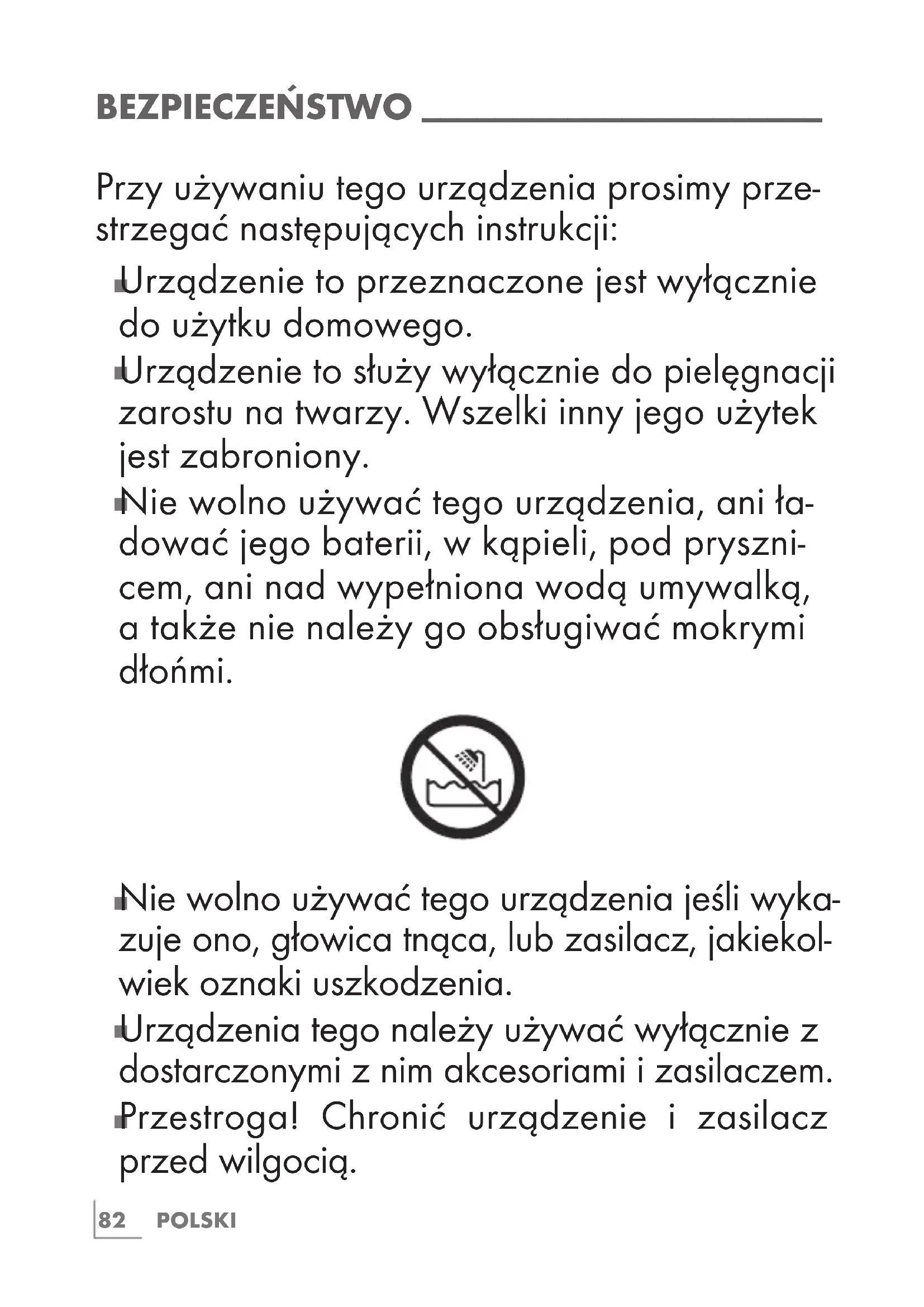 Urządzenie to służy wyłącznie do pielęgnacji zarostu na twarzy. Wszelki inny jego użytek jest zabroniony.