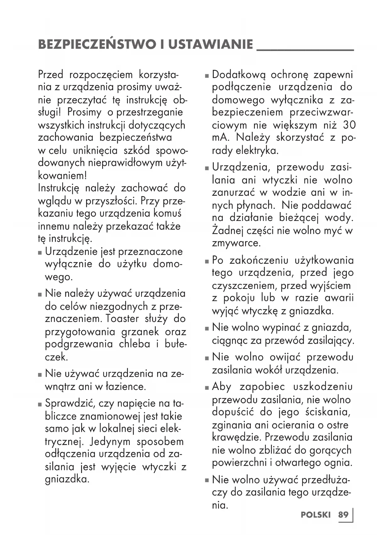 Nie należy używać urządzenia do celów niezgodnych z prze- znaczeniem. Toaster służy do przygotowania grzanek oraz podgrzewania chleba i bułe- czek.